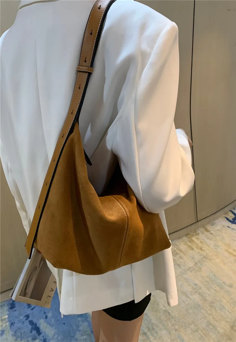 Pu Leather Women Bags Ladies Handbag Shoulder Crossbody Bag Faux Suede Brown