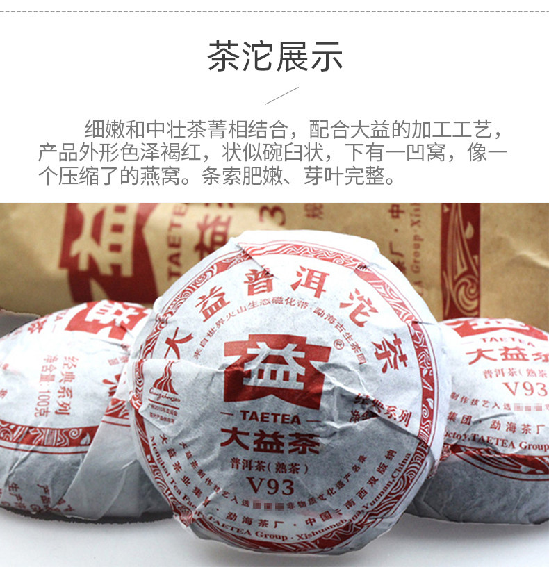 Pu'er V93 Tea * 2010 TAETEA Menghai Dayi Pu-erh Tea Tuo Cha Puer Ripe Tuocha