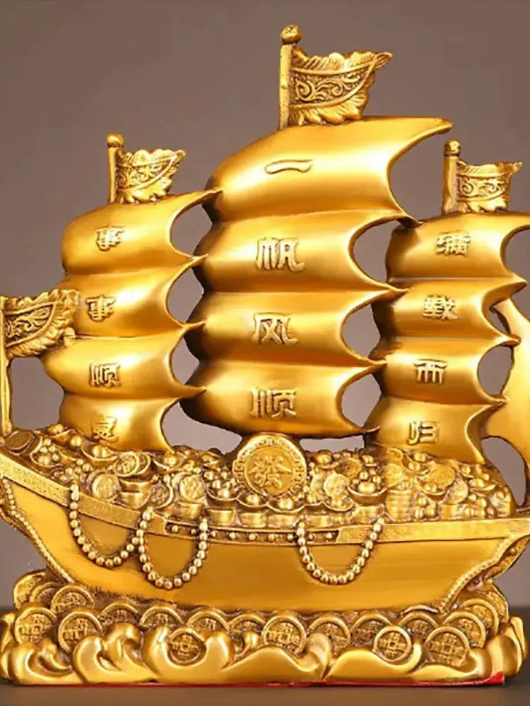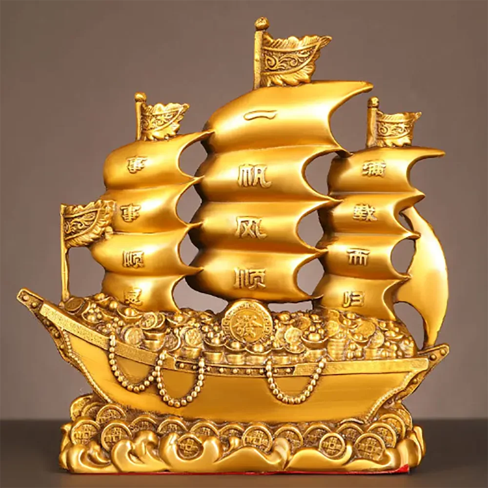 Pure Copper Dragon Boat Ornaments Smooth Sailing Full of Dragon Boat Living Room Office Desktop Decoration