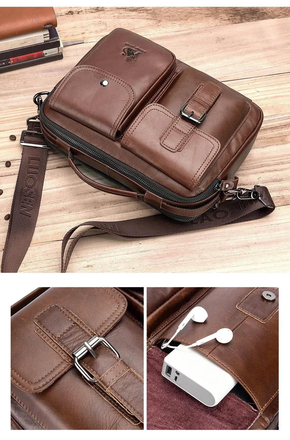 Pure Genuine Leather Men's Shoulder Bag