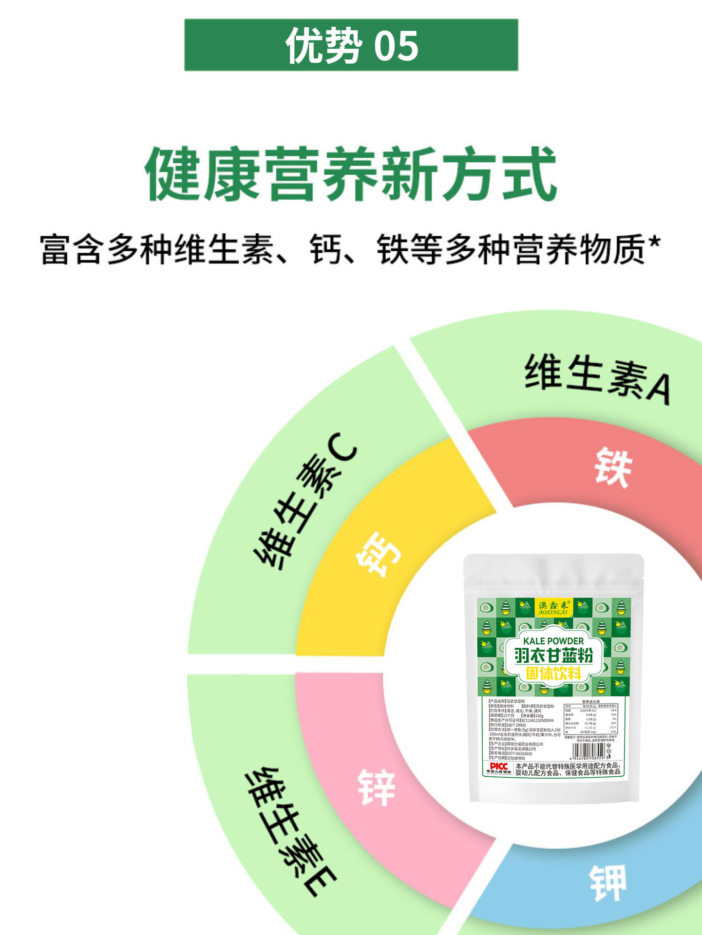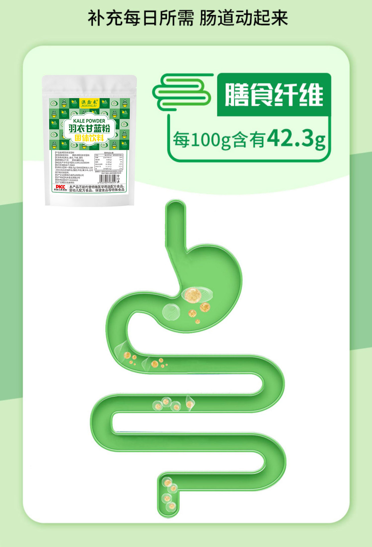 Pure Kale Powder Fruit and Vegetable Dietary Fiber Green Juice Powder 120G