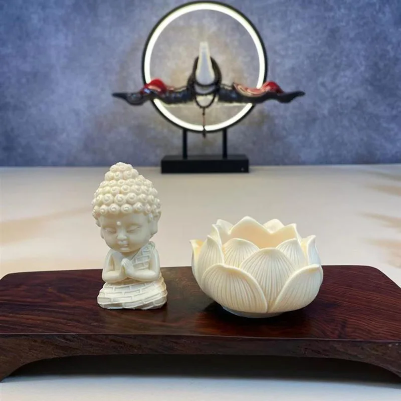 Q Version Lotus Tathagata Buddha Carved Buddha Statue Cute Character Model Home Desktop Decoration Accessories Gift Statue