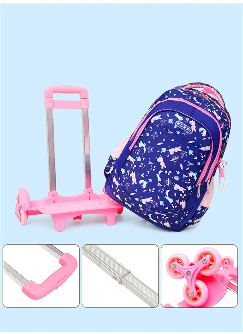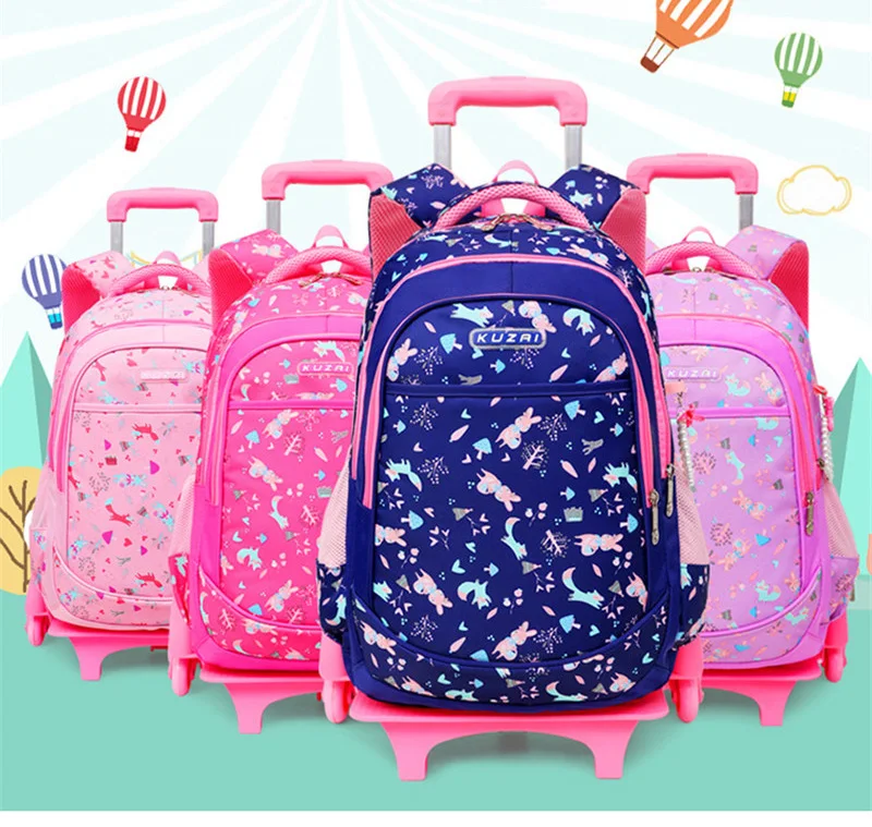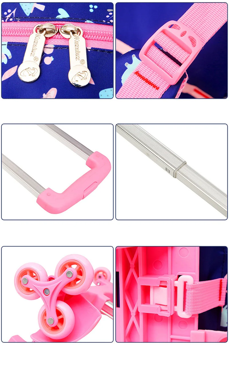 Removable 2/6 Wheels Kids boys girls Trolley Schoolbag Luggage Book Bag Backpack Children School Bags travel luggage sac mochila