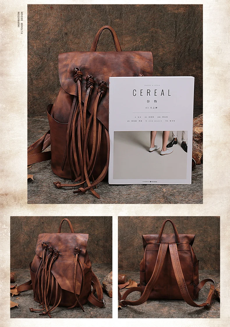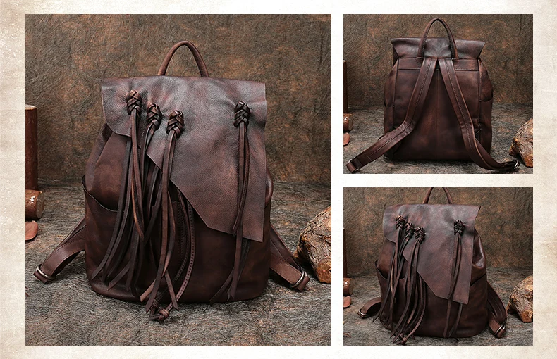 Retro casual cowhide leather backpack women's bag large capacity female travel backpack women original school backpacks 2020 new