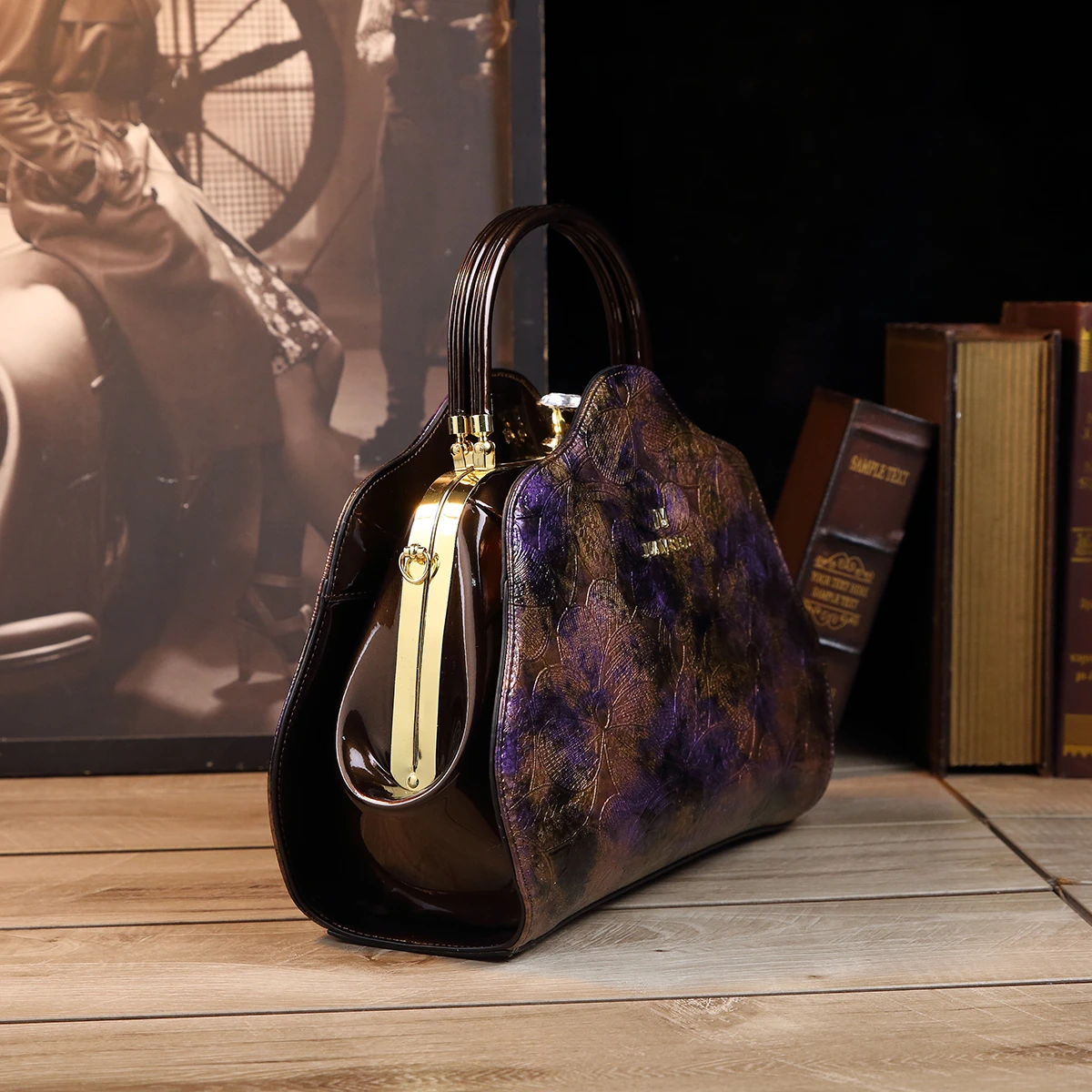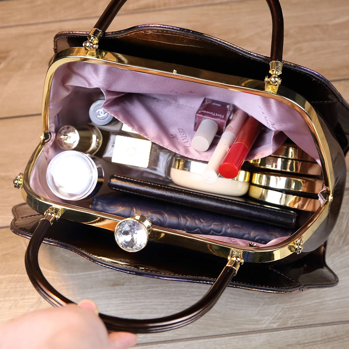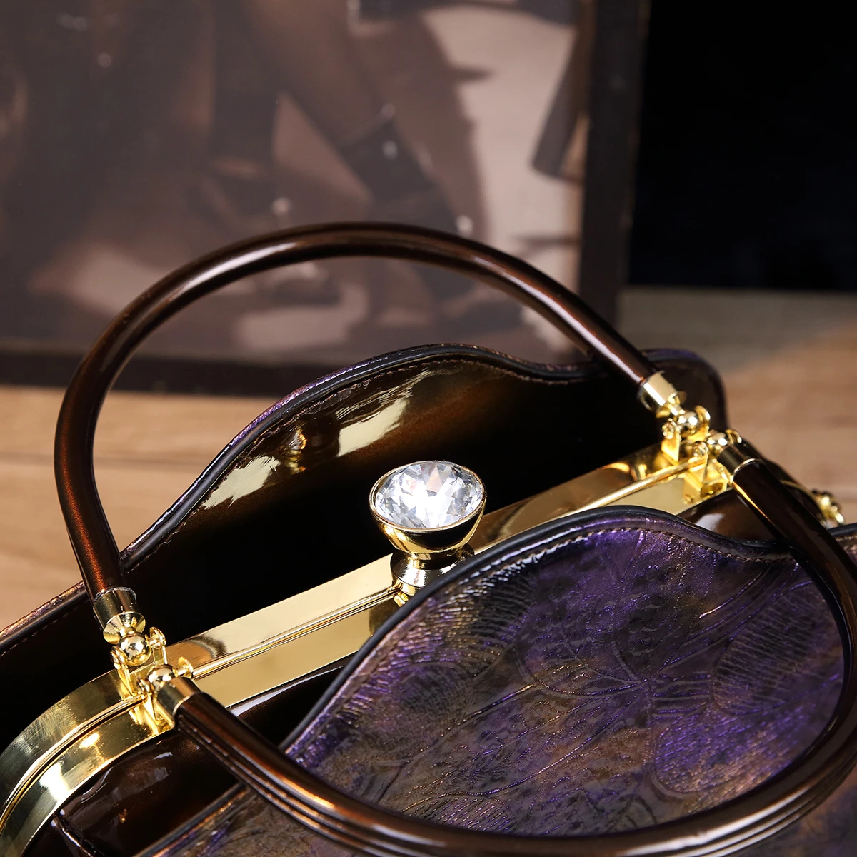 Retro PU Shoulder Bag, Women's Fashion Handbag & Satchel Purse,rhinestones decorative clip frame patent leather women's bag