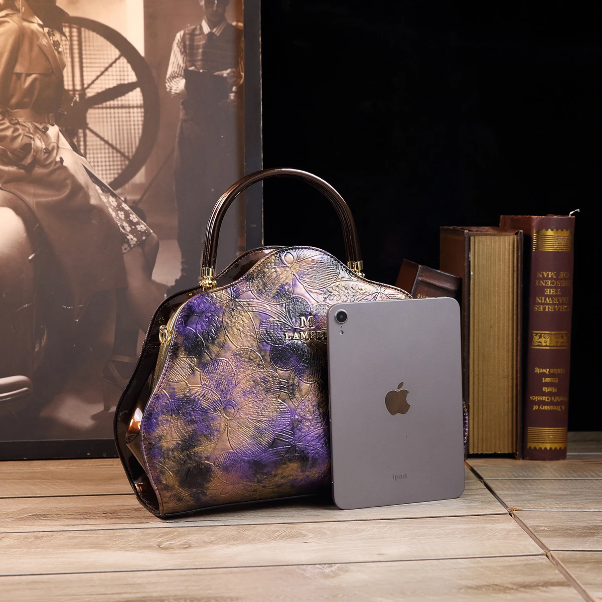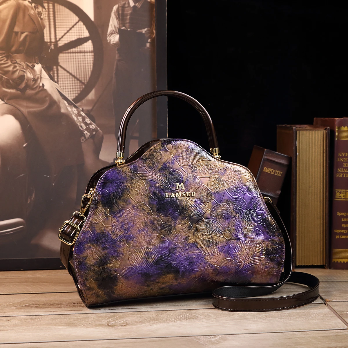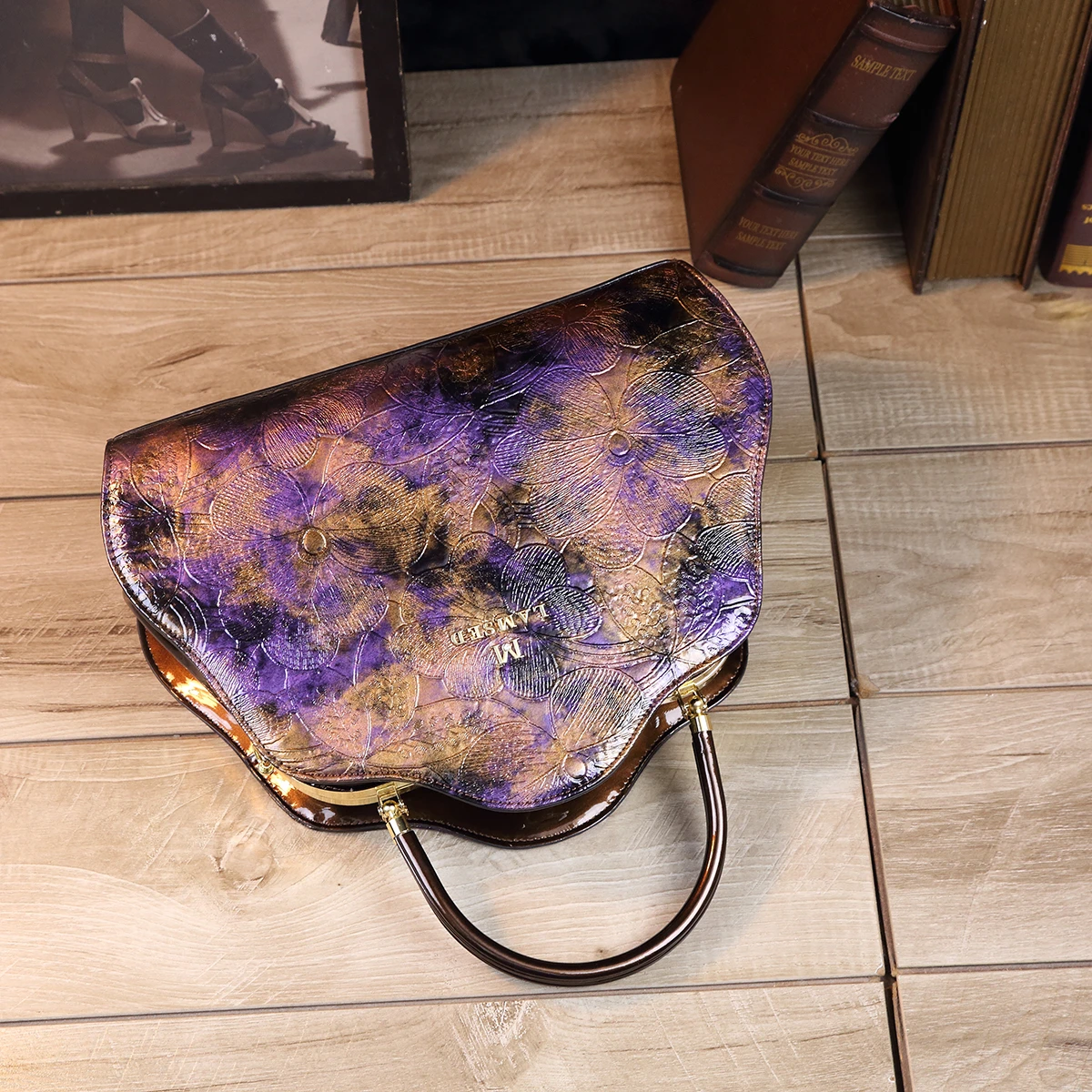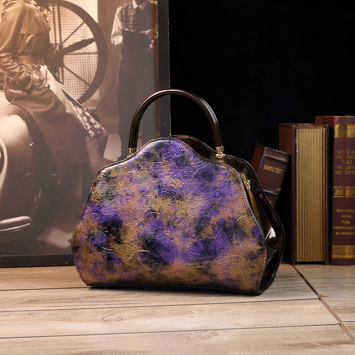 Retro PU Shoulder Bag, Women's Fashion Handbag & Satchel Purse,rhinestones decorative clip frame patent leather women's bag