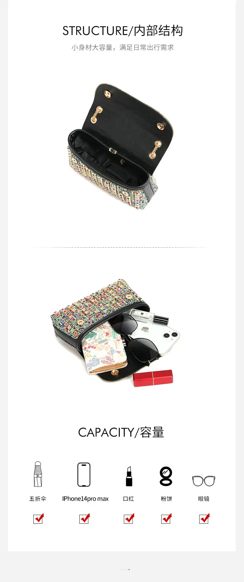 Rhinestone Bag Full of Diamonds 2024 New Fashion Dionysus Bags High-end Small Shoulder Bag with Diamonds Women's Bag Chain Bags