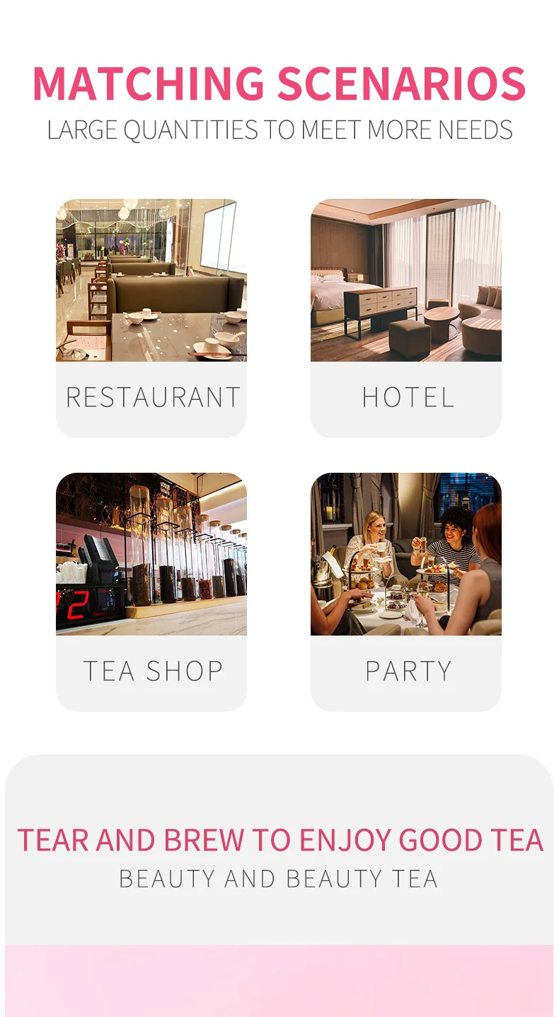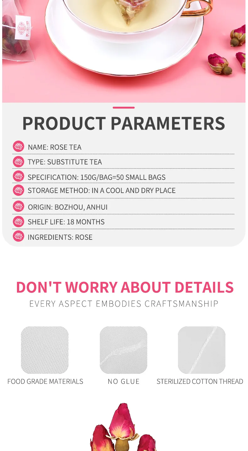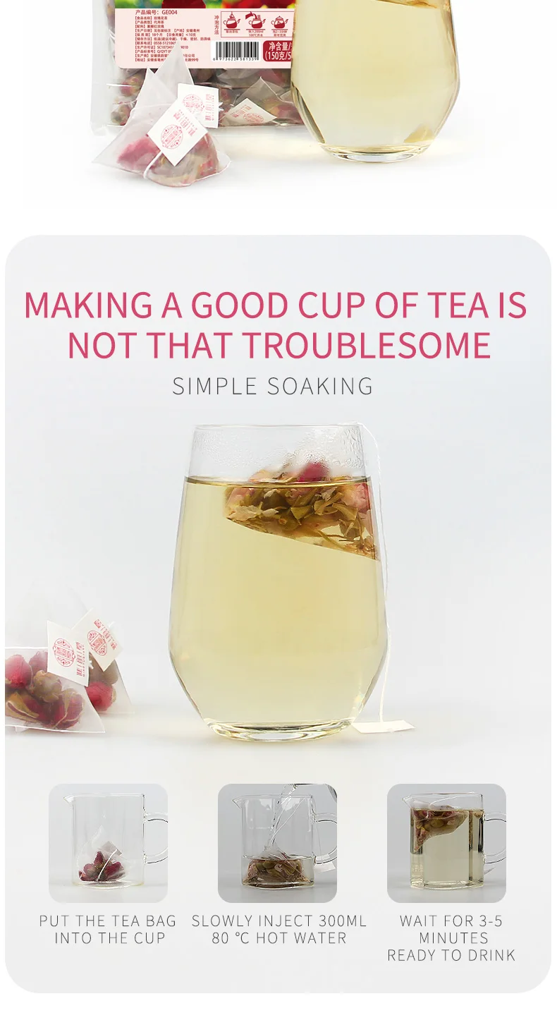 This product adopts a triangular tea bag design, which can prevent tea ingredients from entering the mouth when drinking.