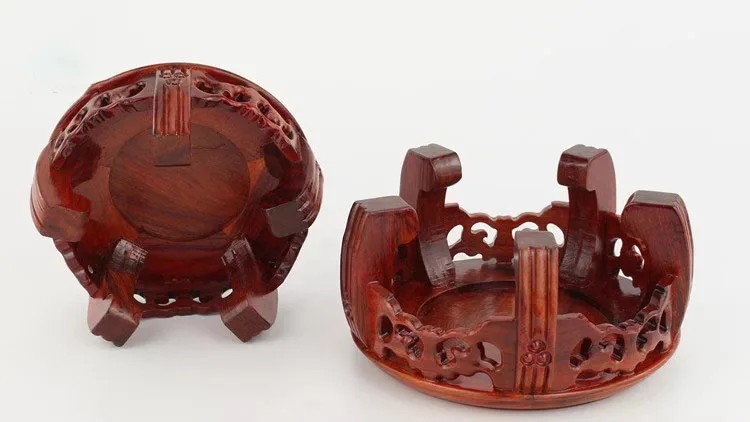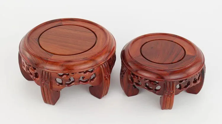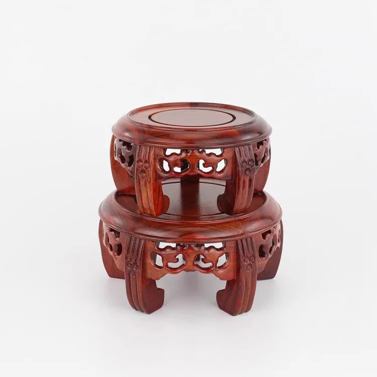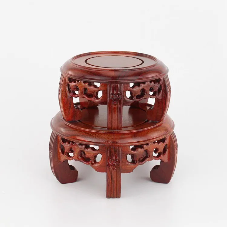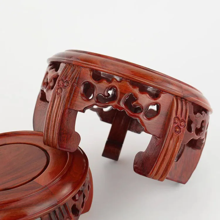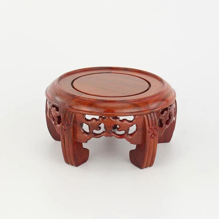 Round Solid Wood Base Ornament, Buddha Statue, Jade Ware, Solid Wood Support, Bonsai Vase, Round Head Antique Base