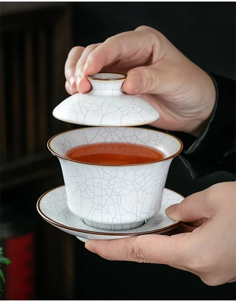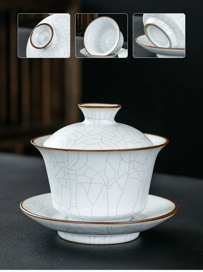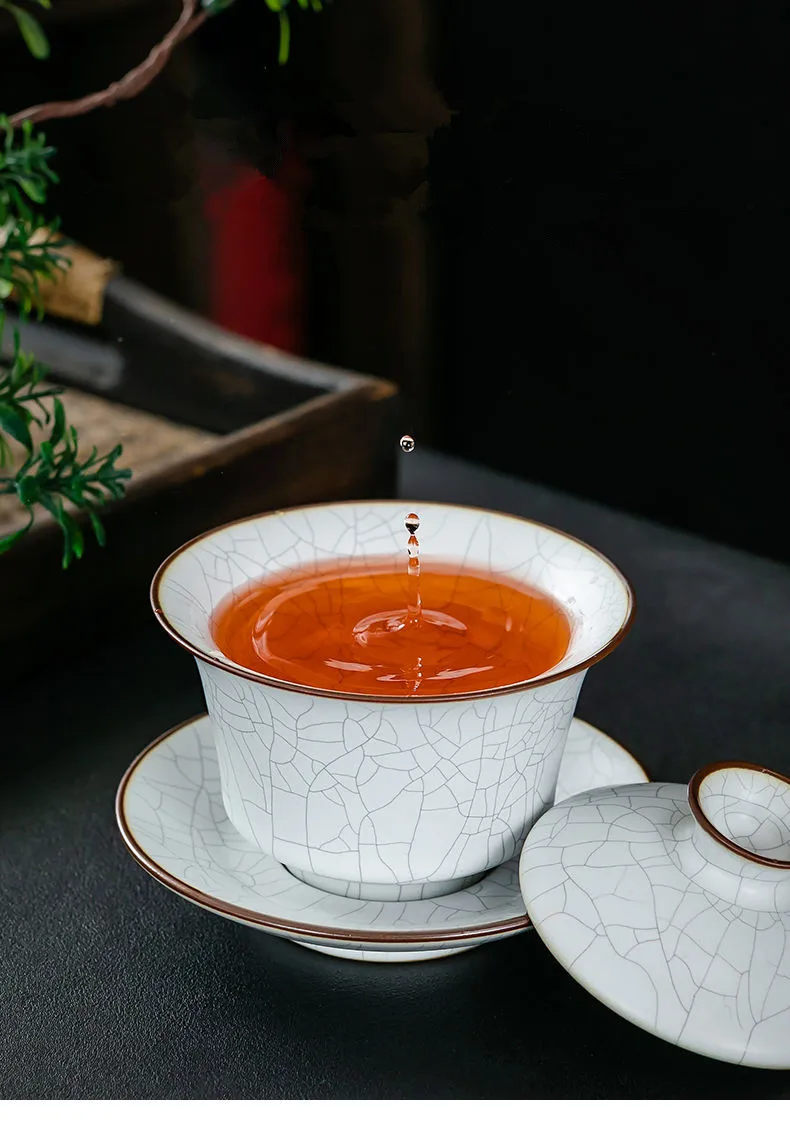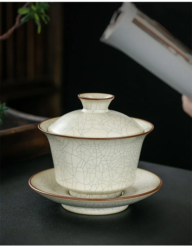 Ru Kiln Sancai Cover Bowl, Single High-end Kungfu Tea Set, Ice Cracked, Large Household Tea Bowl, Non Hot Tea Cup