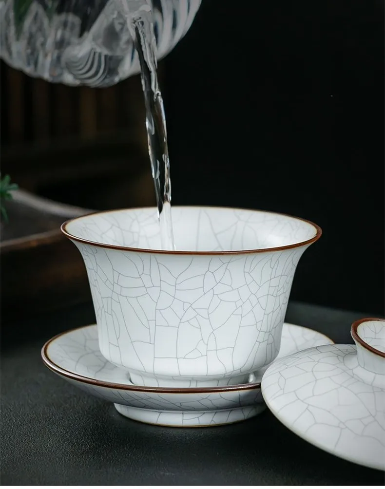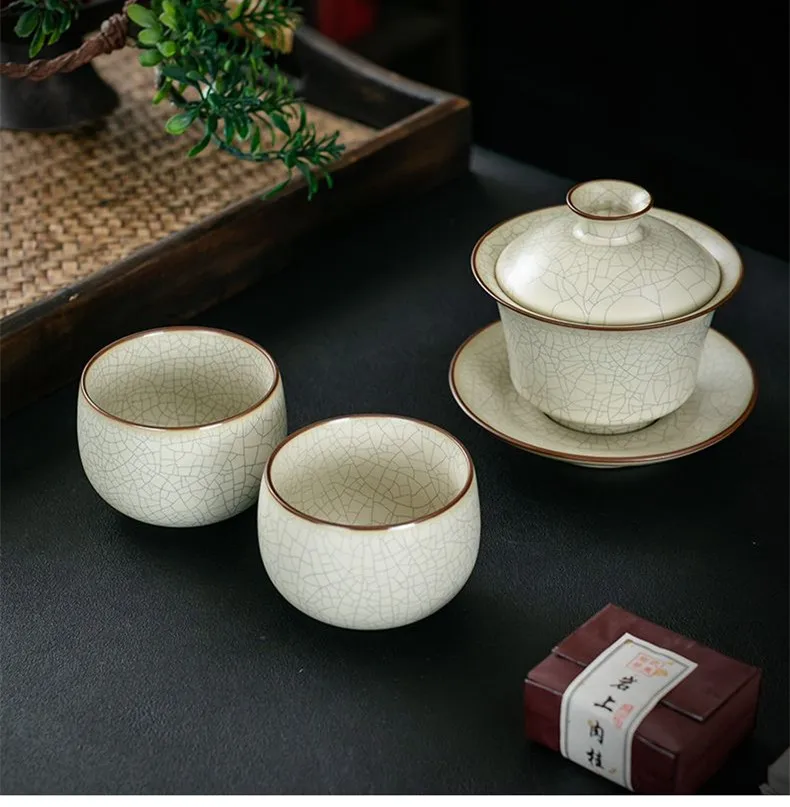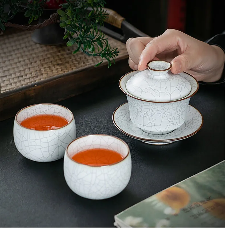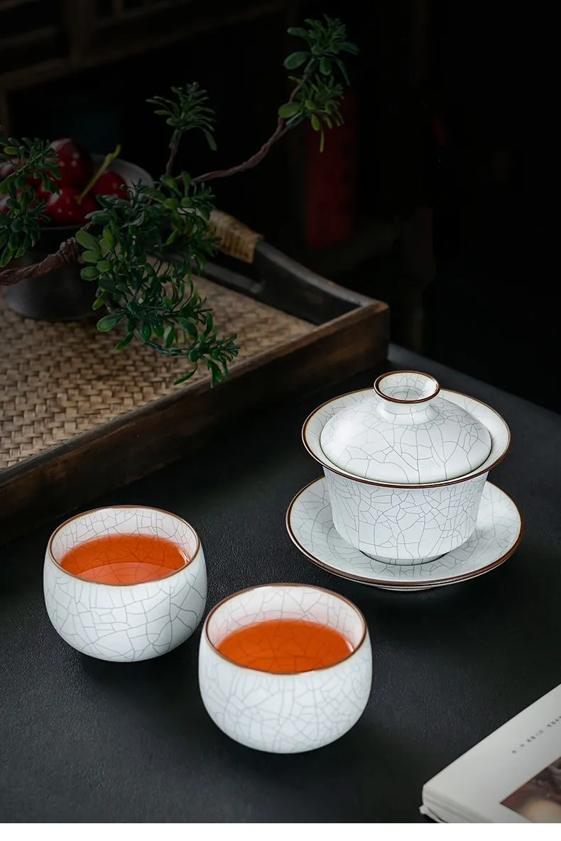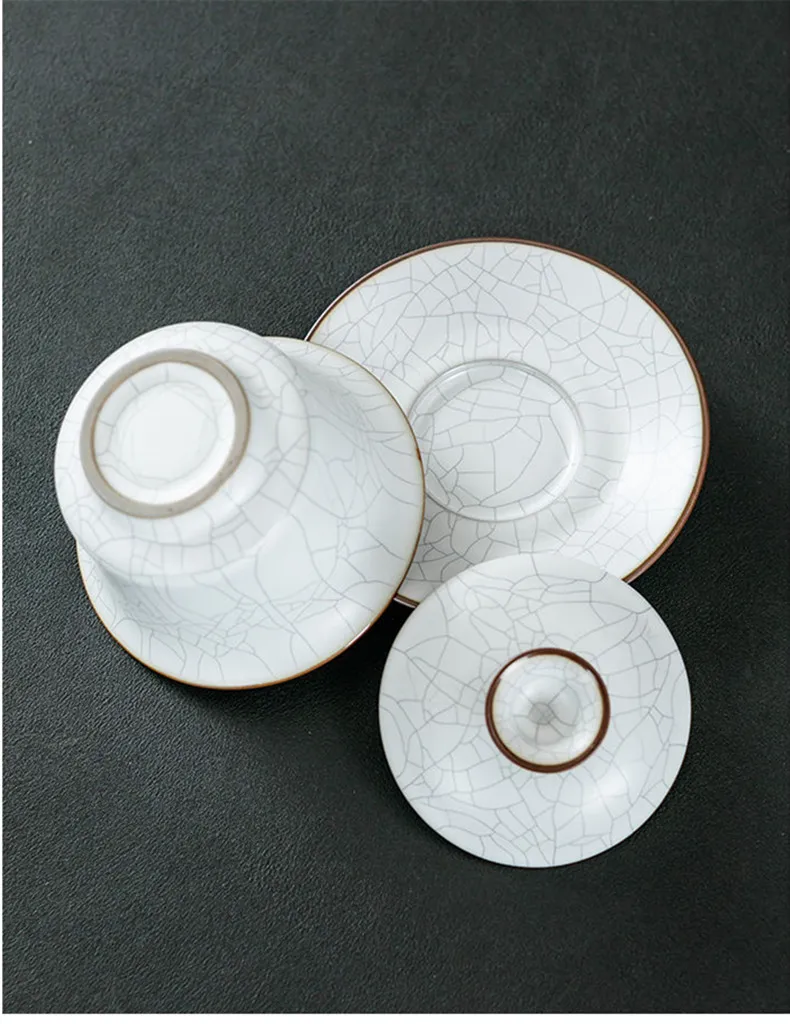 Ru Kiln Sancai Cover Bowl, Single High-end Kungfu Tea Set, Ice Cracked, Large Household Tea Bowl, Non Hot Tea Cup