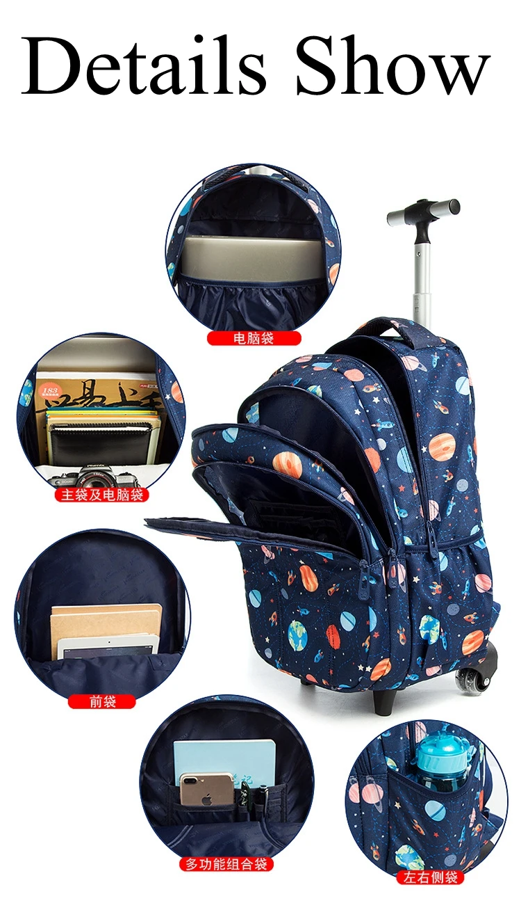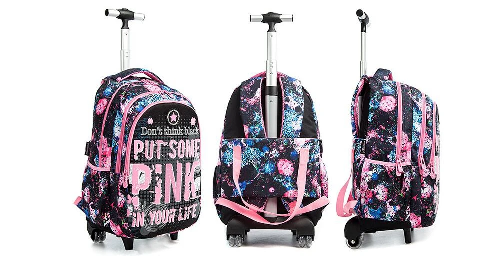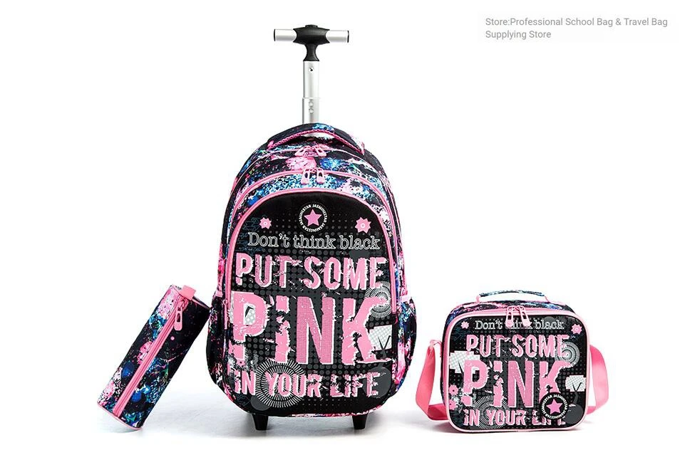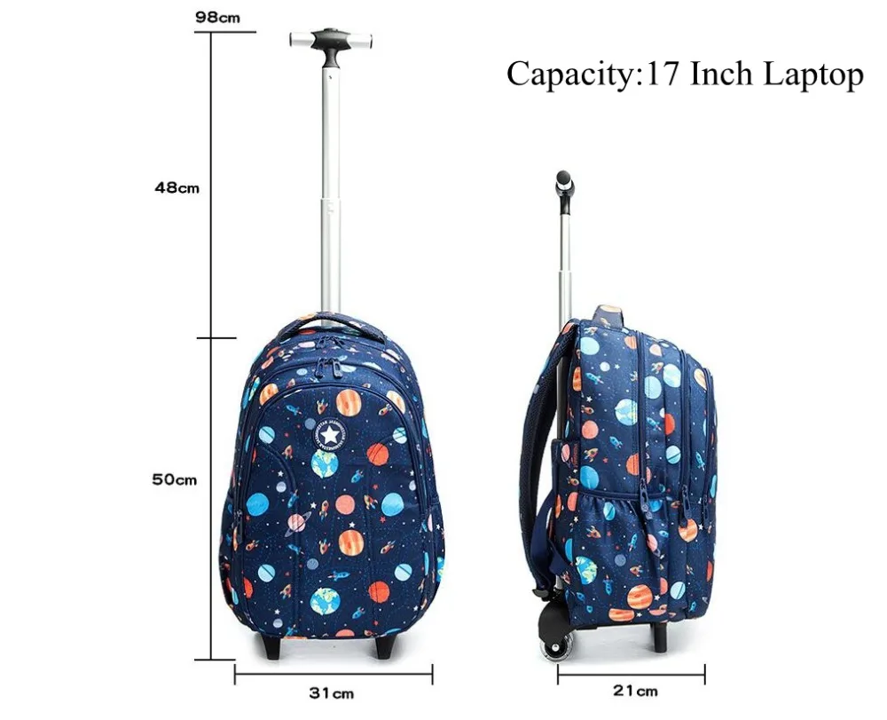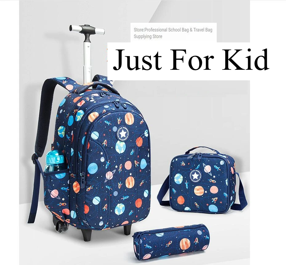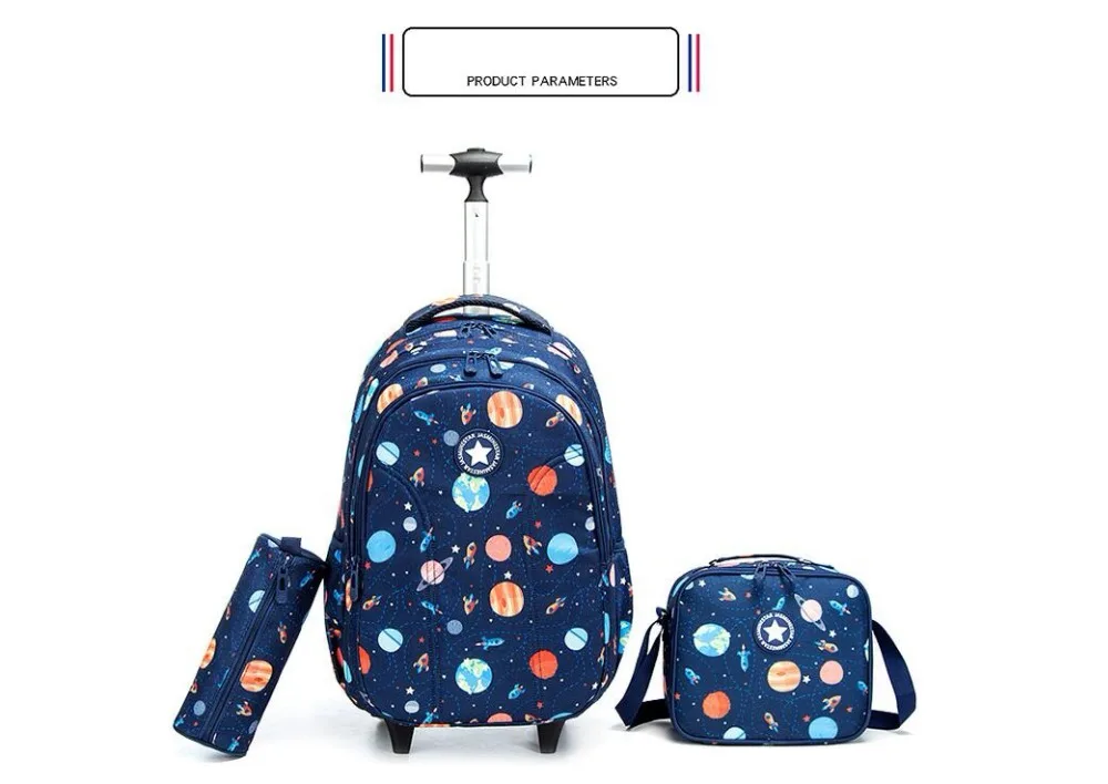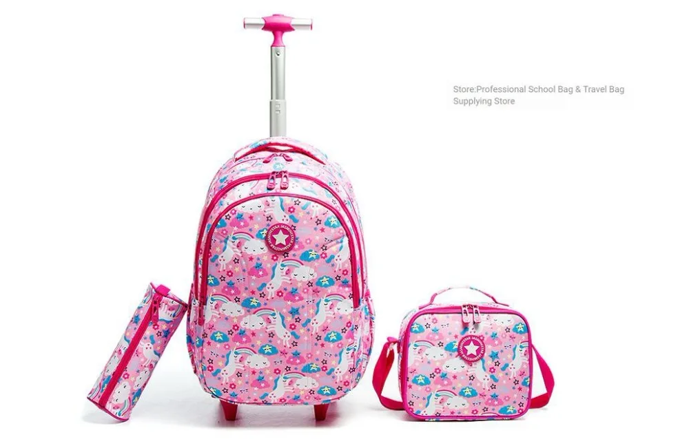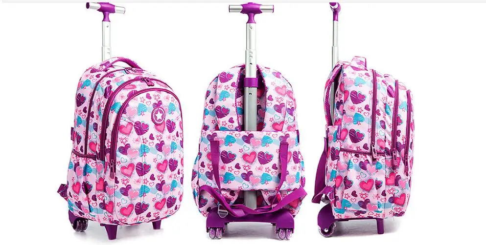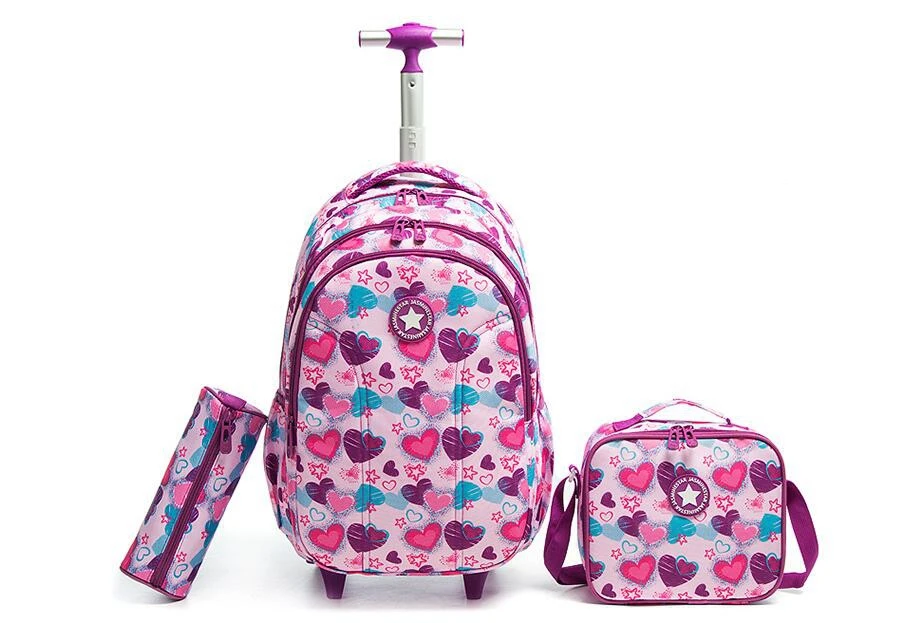 School Backpack with Trolley bags with lunch bag school trolleyon wheels for girls School wheeled Backpack for boys wheeled bags