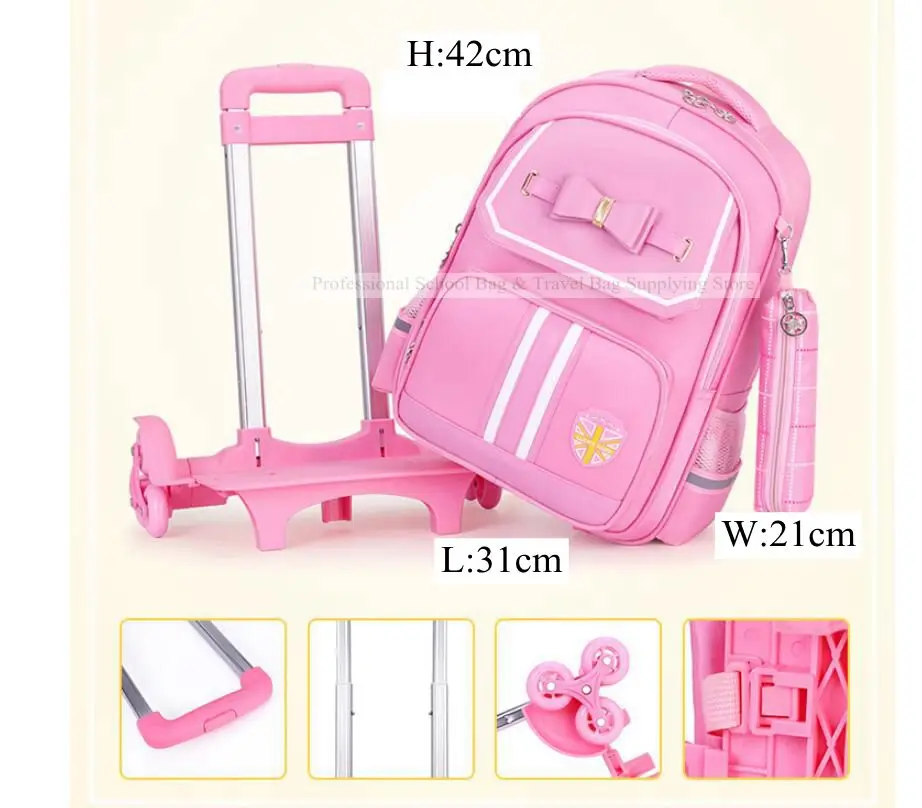 School Rolling backpack school bag on wheels wheeled backpack for girls student children school Trolley Bag Rucksacks for kids