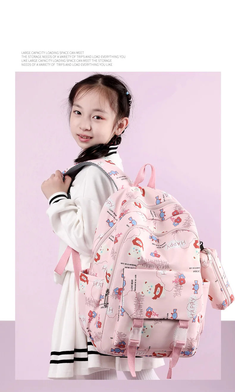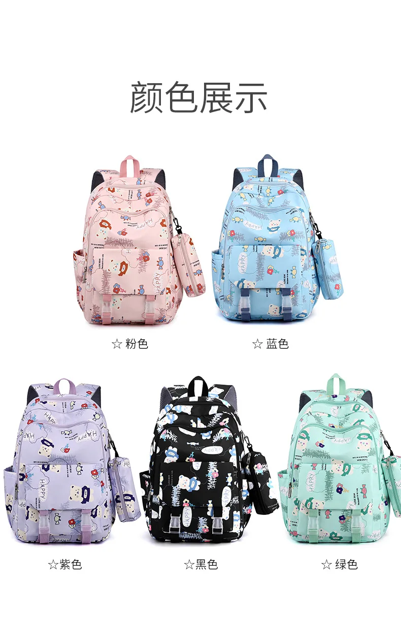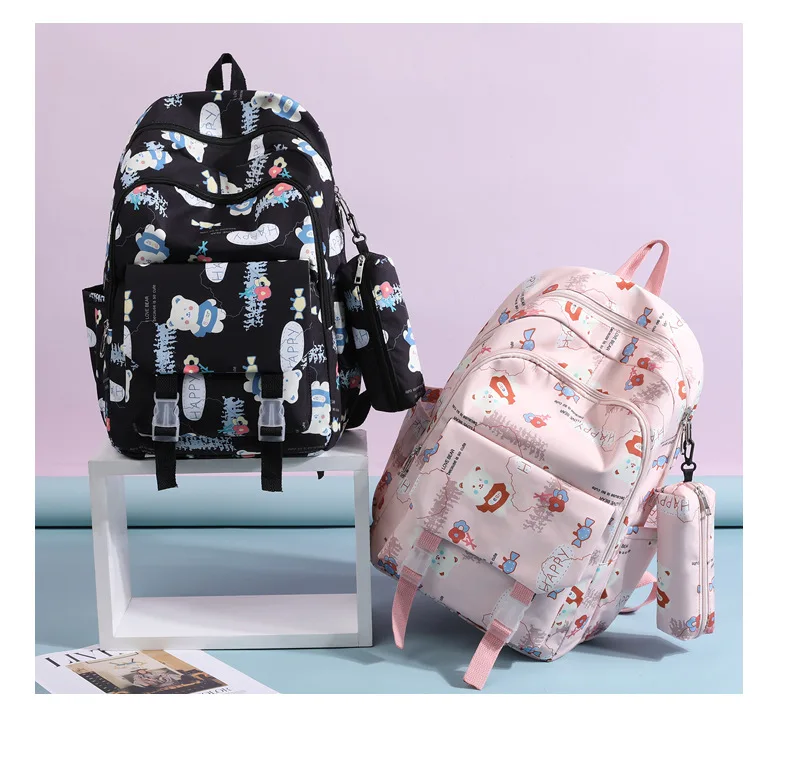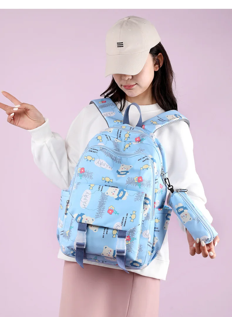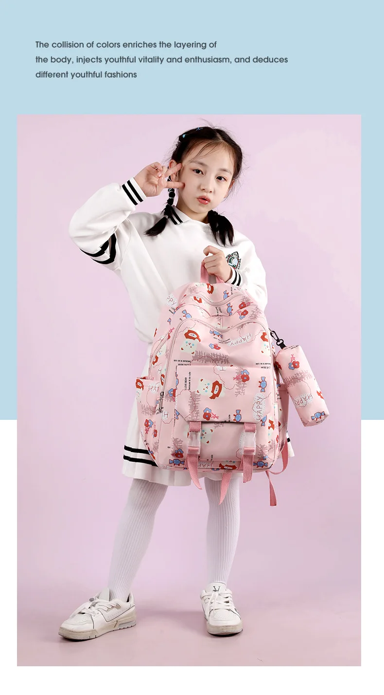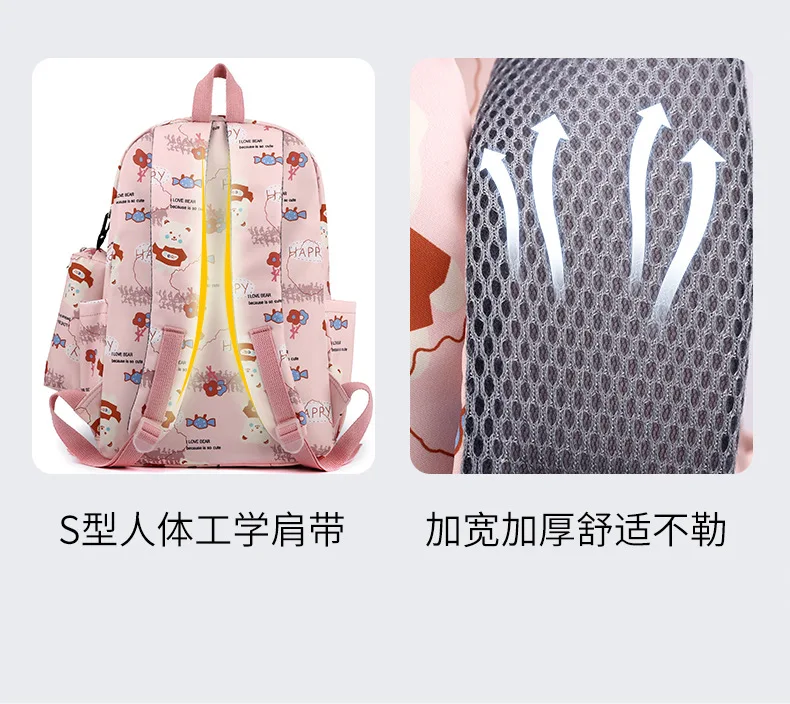 Schoolbags for Junior High School Students Suitable for Girls' Backpacks Cartoon Pupils Schoolbags with Pencil Case