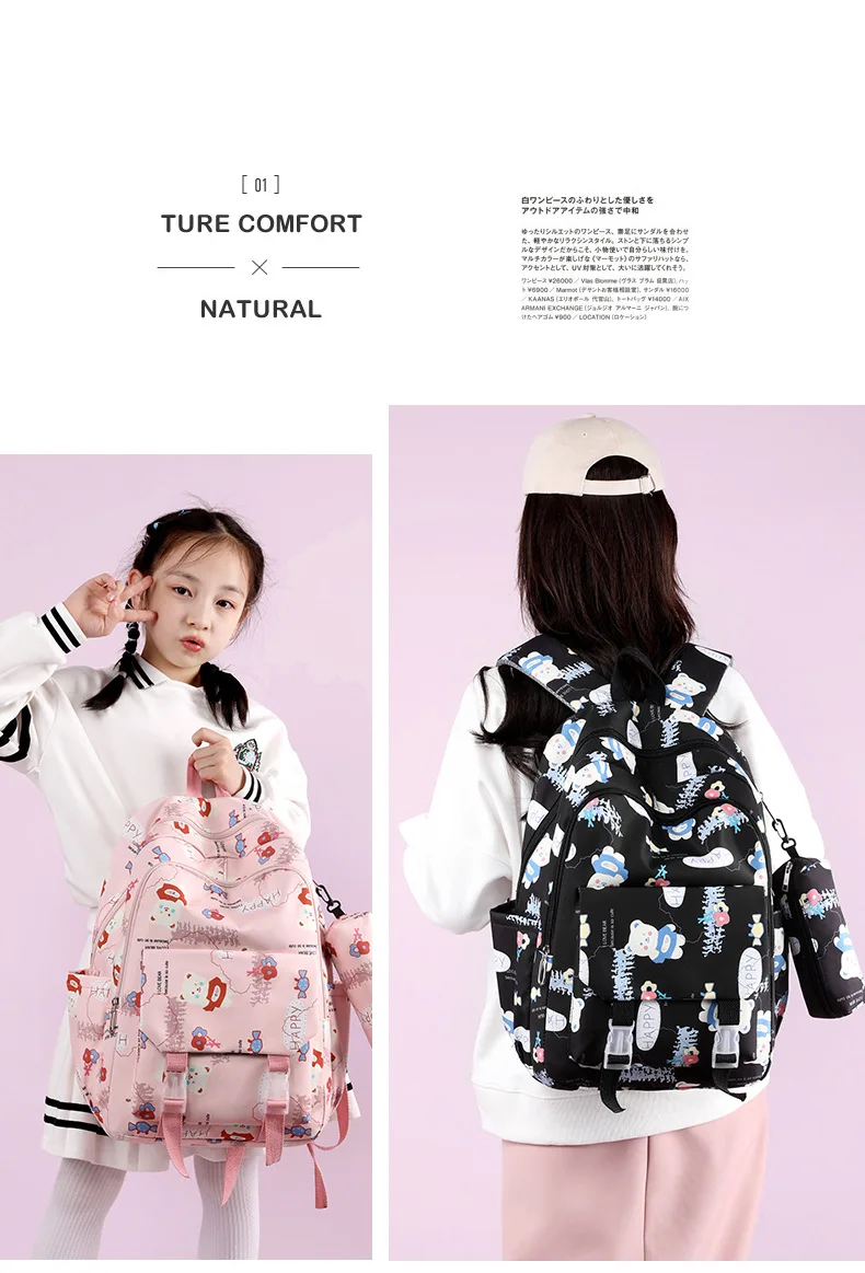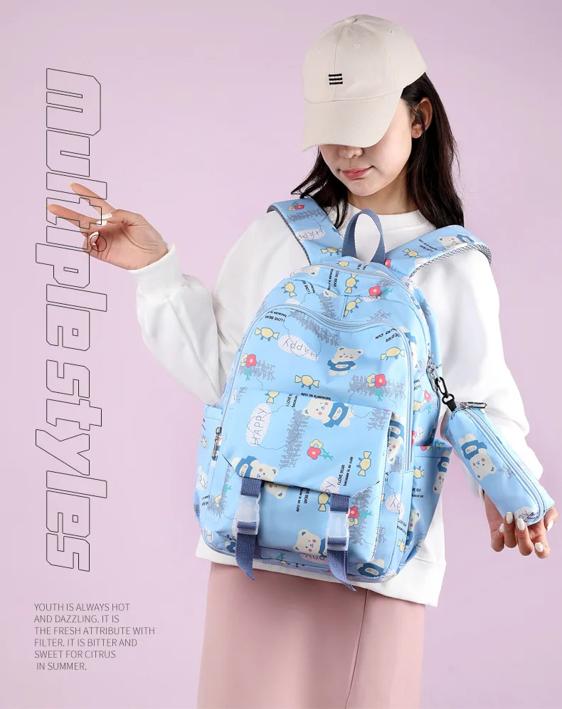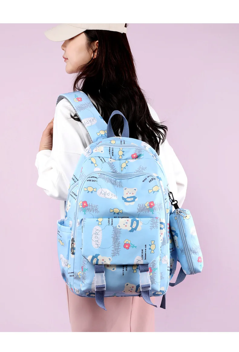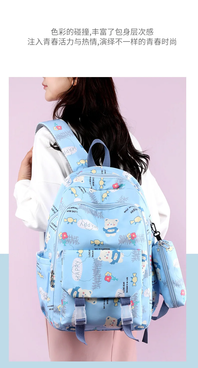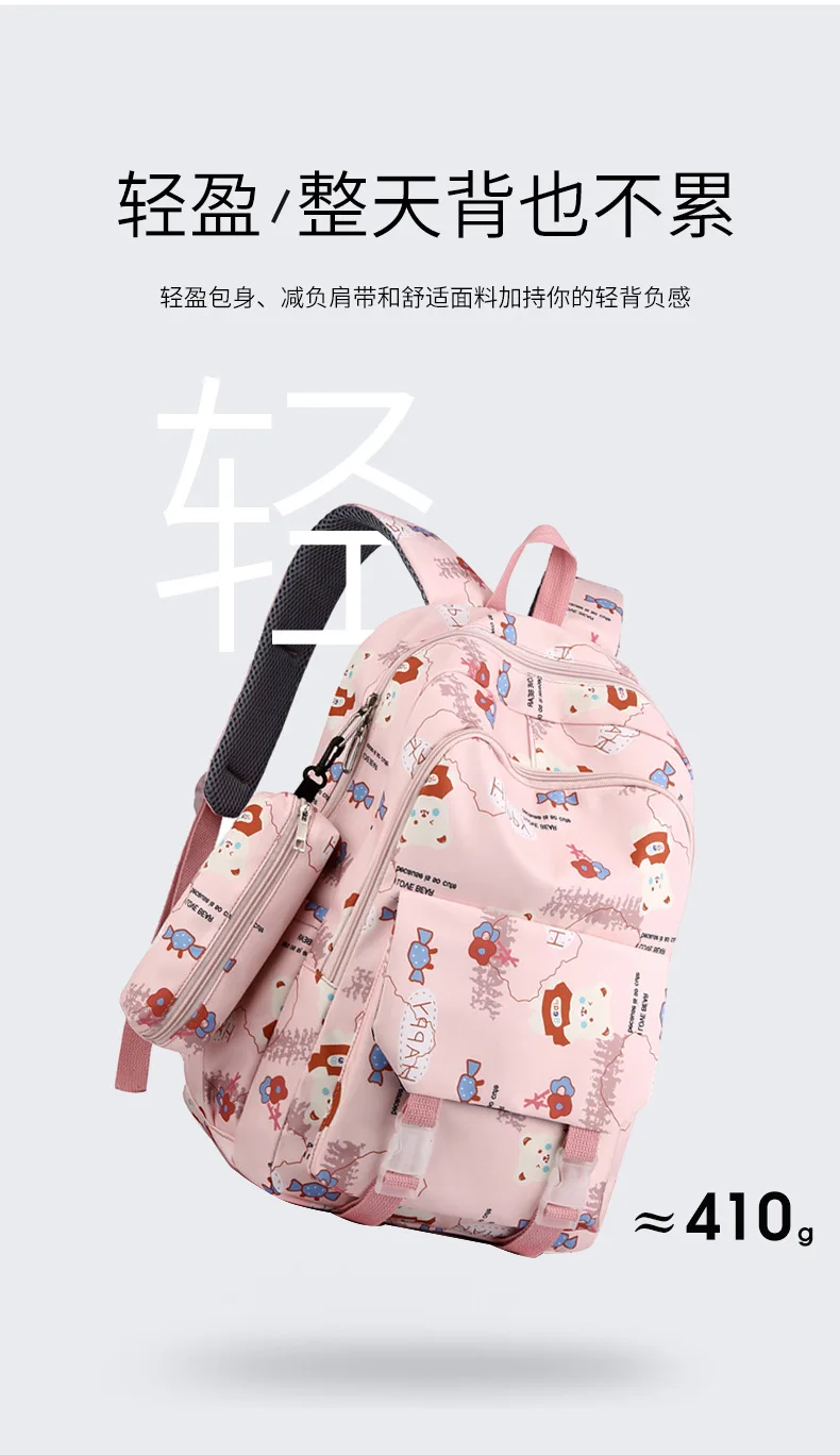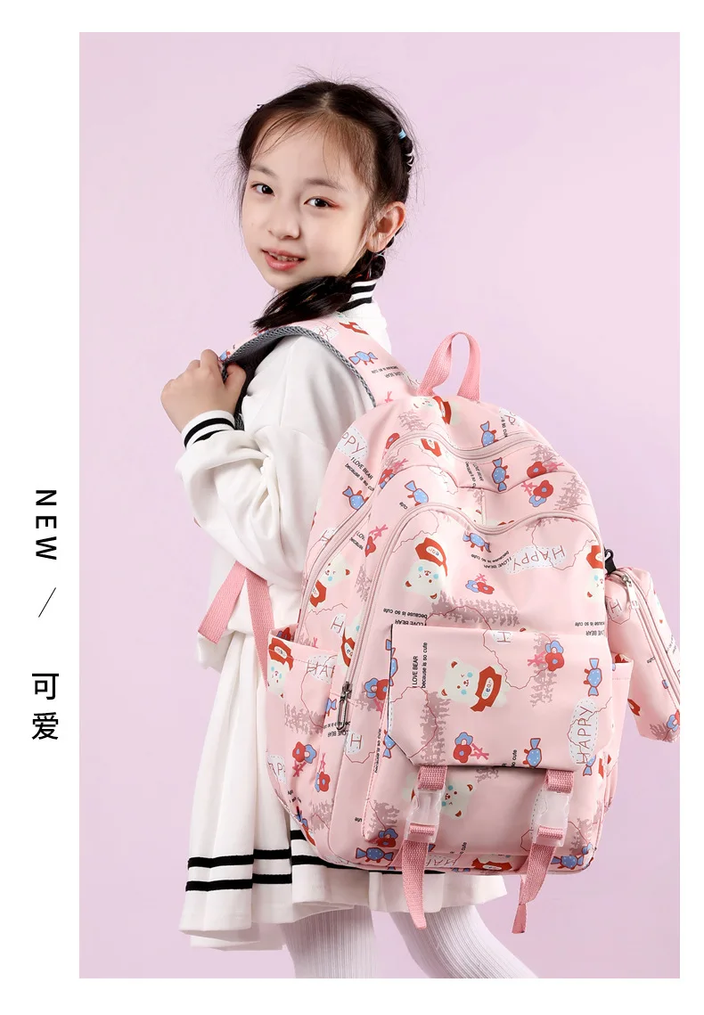 Schoolbags for Junior High School Students Suitable for Girls' Backpacks Cartoon Pupils Schoolbags with Pencil Case