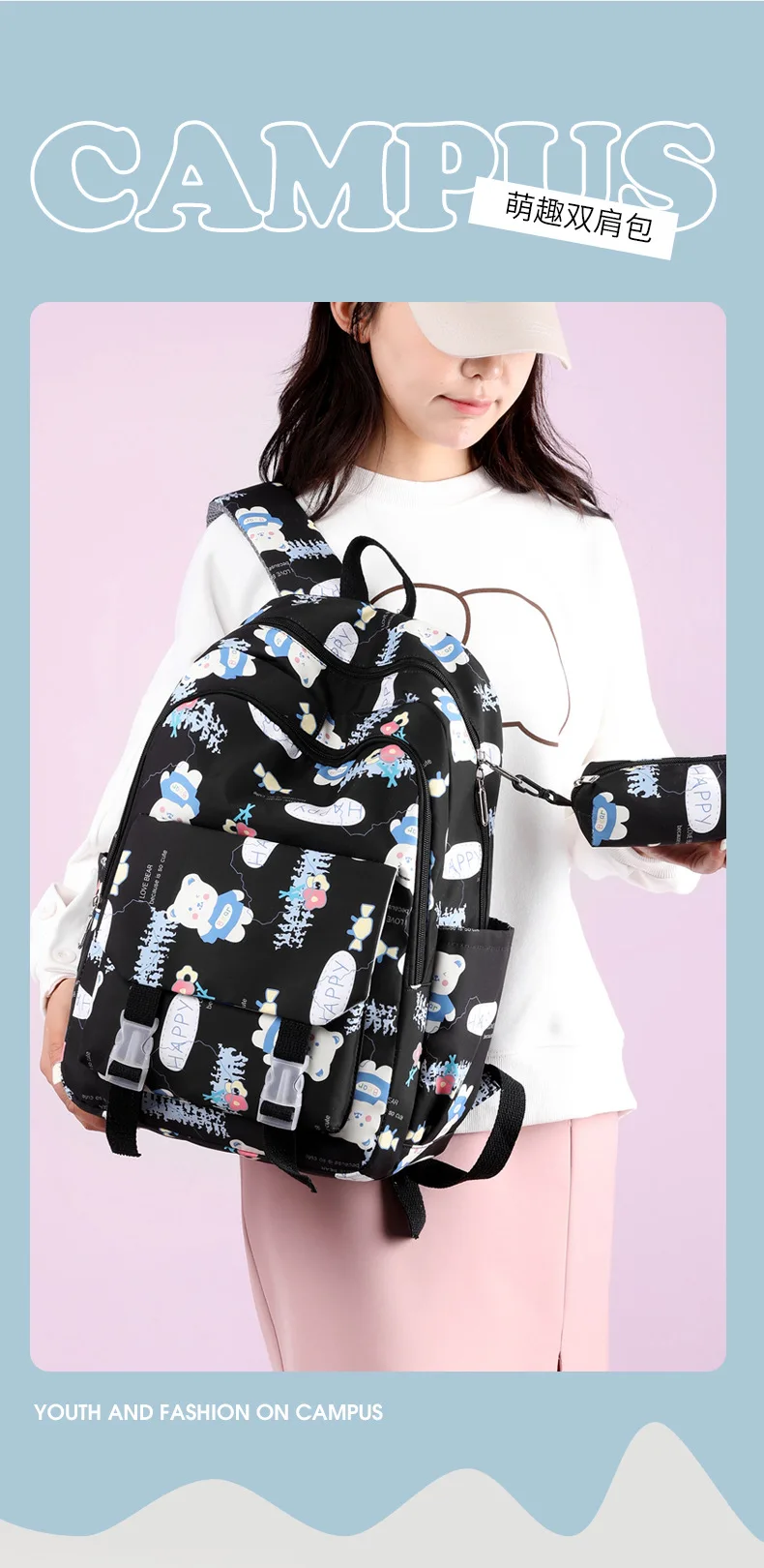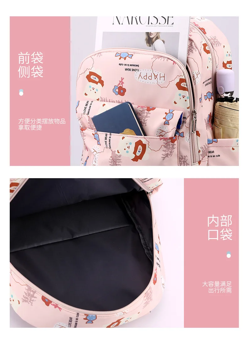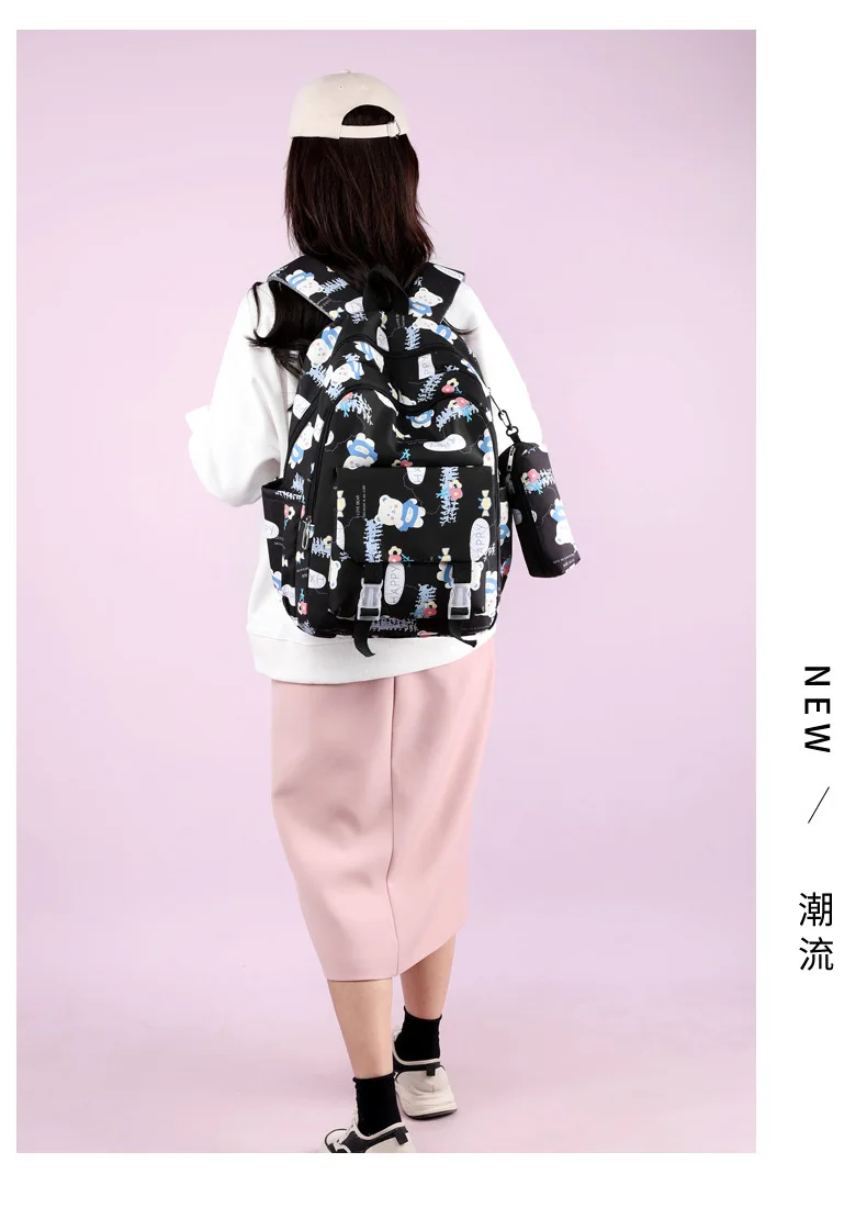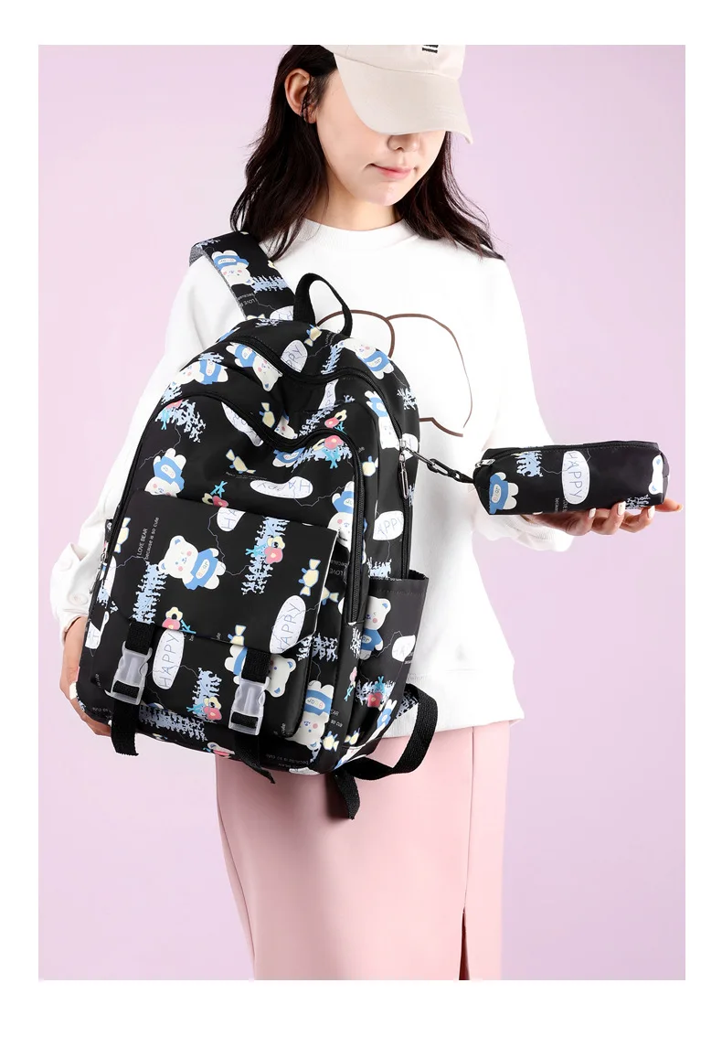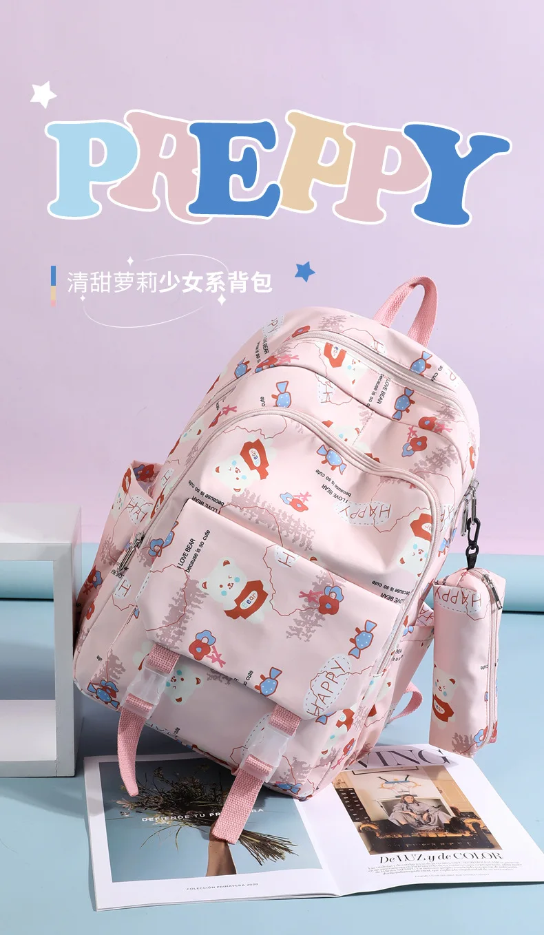 Schoolbags for Junior High School Students Suitable for Girls' Backpacks Cartoon Pupils Schoolbags with Pencil Case