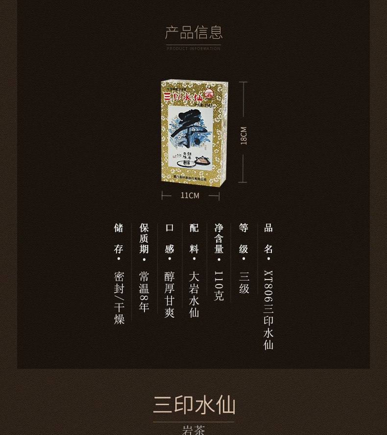 Description: Sanyin Narcissus is an old duct of the seawall for decades. After the tea is made into a semi-finished duct, it needs to pass three tests before finishing. Each test needs to be stamped with a seal until it is covered with three chapters. Standard duction, and the name of "Sanyin" is still in use today. This duct uses the excellent narcissus in northern Fujian as the raw material. The dry tea has a uniform shape, tight and strong, and the black brown oil is moist and mellow. After drinking, it is a familiar taste with generations.