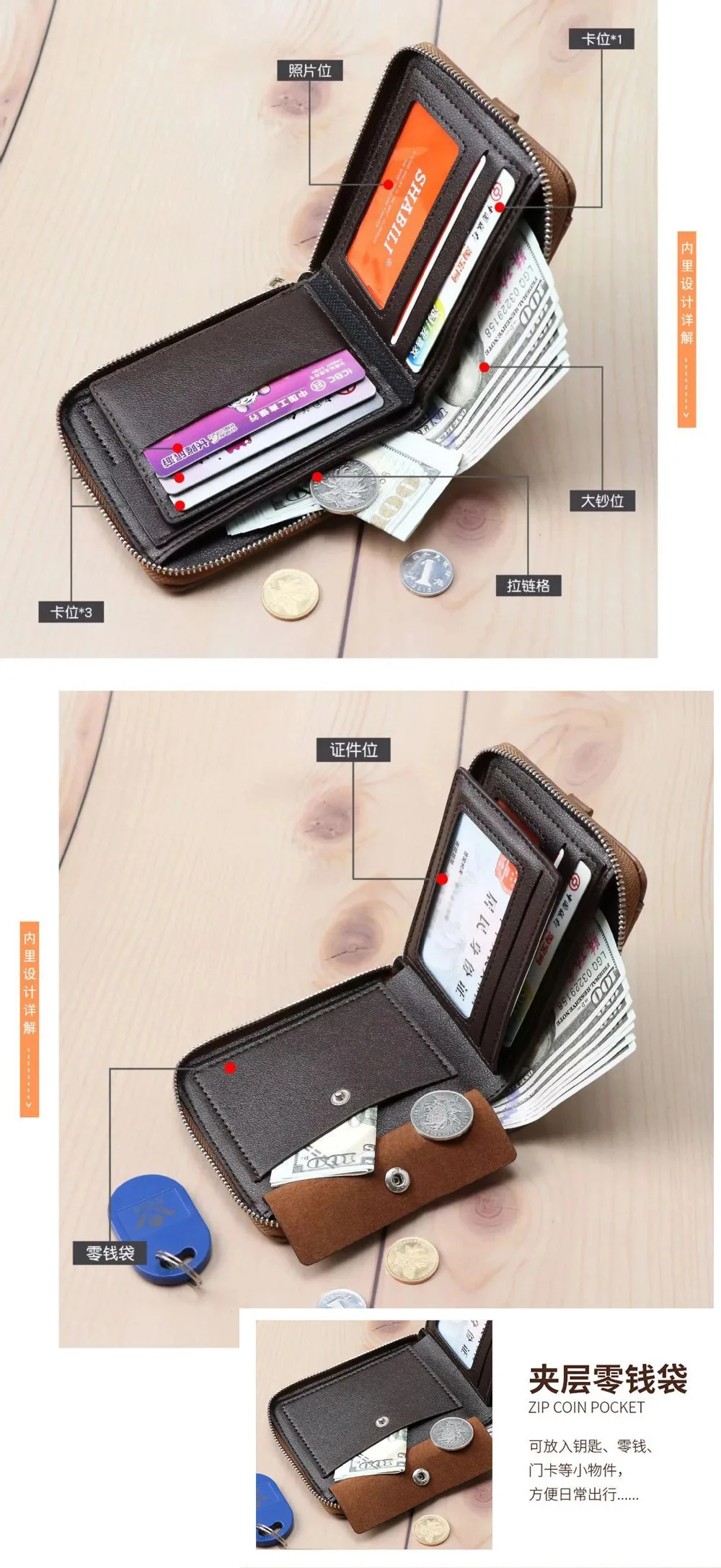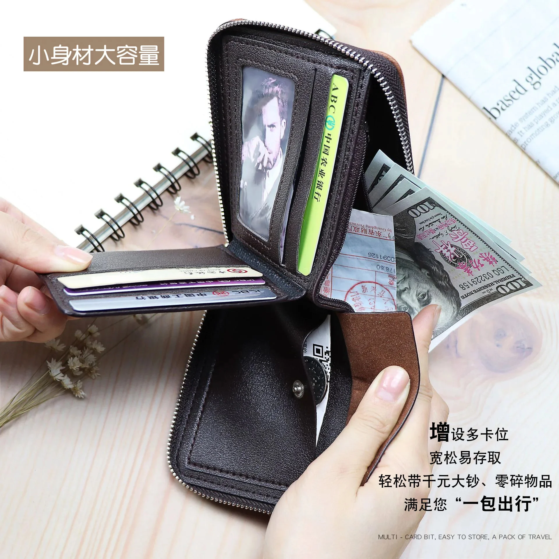 Short Men's Wallet With Zipper