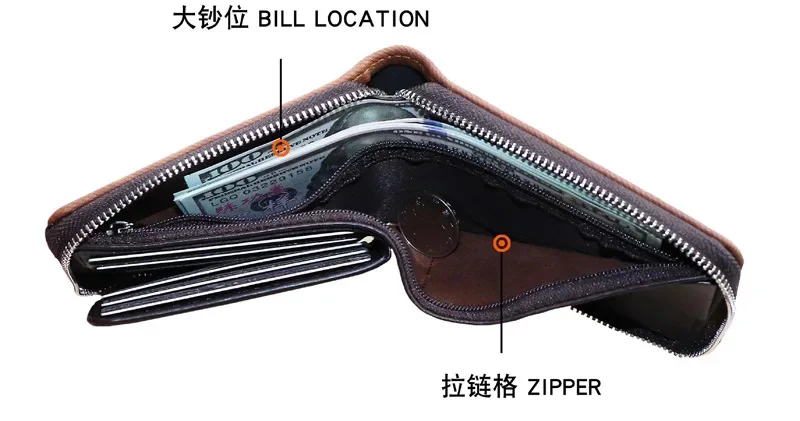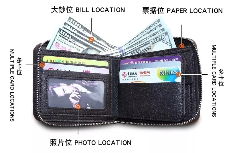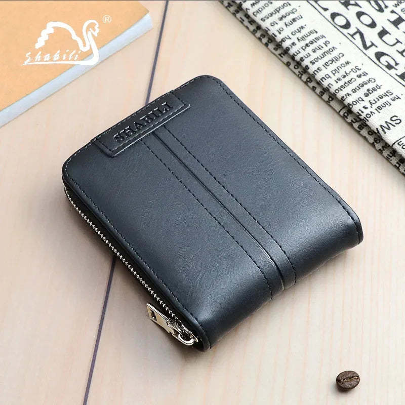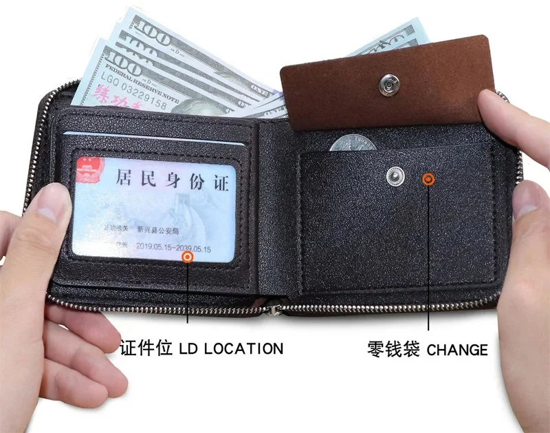 Short Men's With Zipper Small Male PU Leather Coin Purses Multi Function Card Holder For Men Business Money Wallet