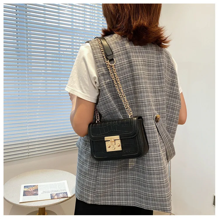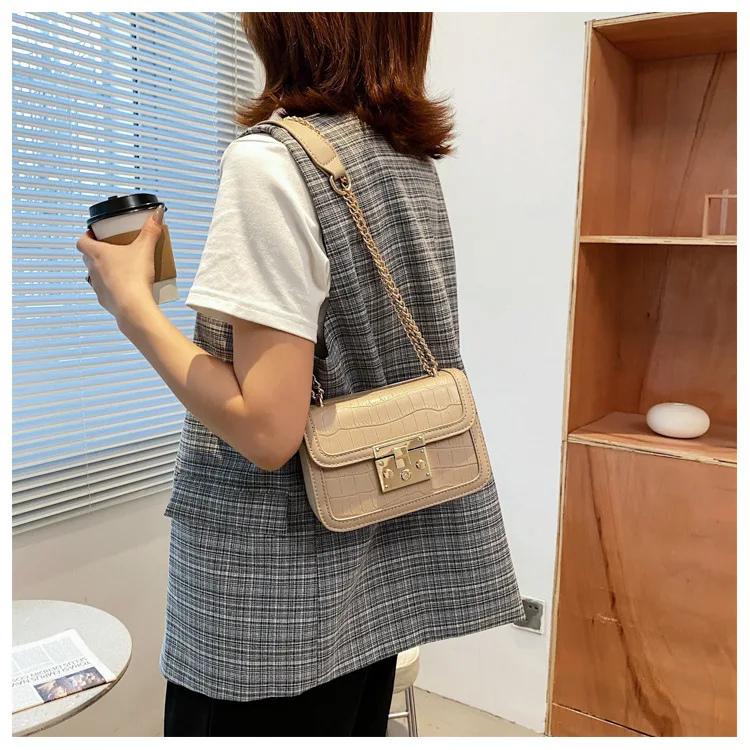 Shoulder Bag One Stone Pattern Simple Chain Lock Buckle Handbags For Women High-Quality Messenger Versatile Crossbody Luxury Y2k
