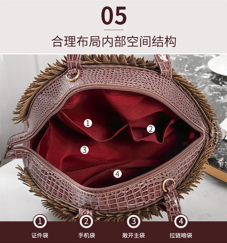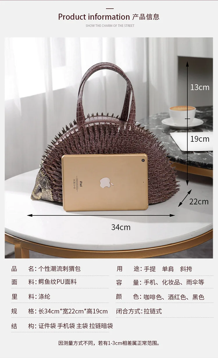 Simulation Hedgehog Styling Women Handbags Famous Brand Crocodile Patent Leather Bags Women Shoulder Bag Tote