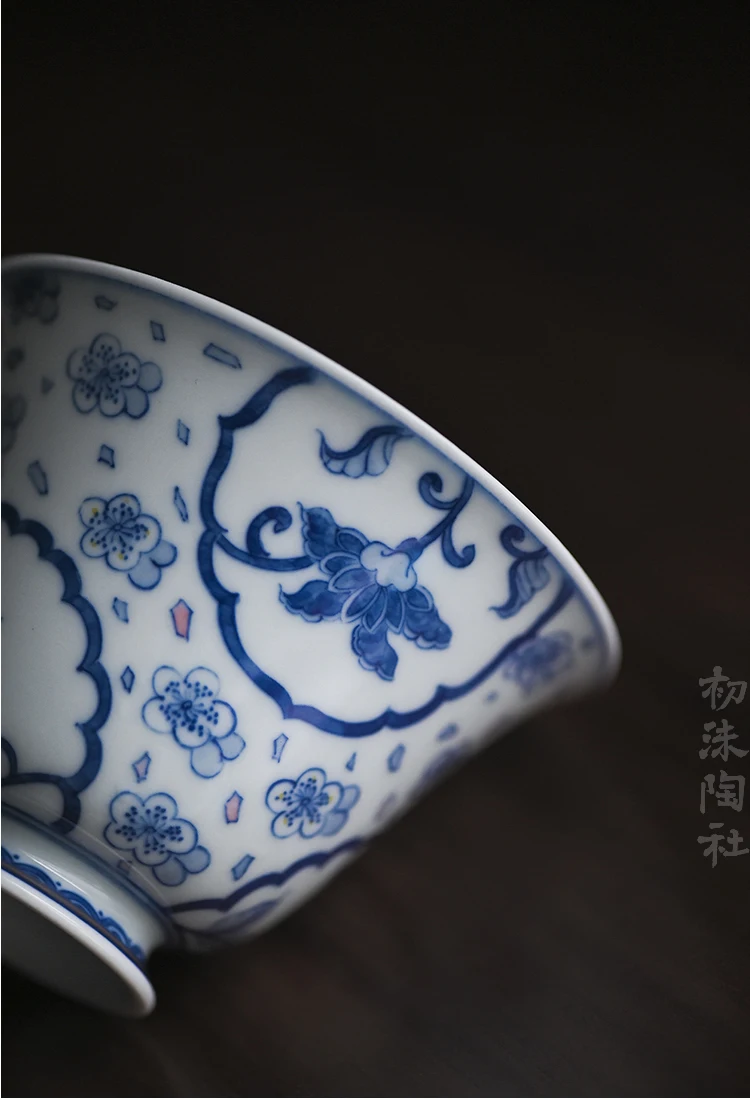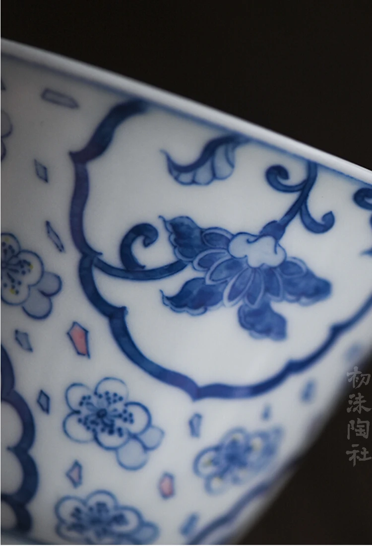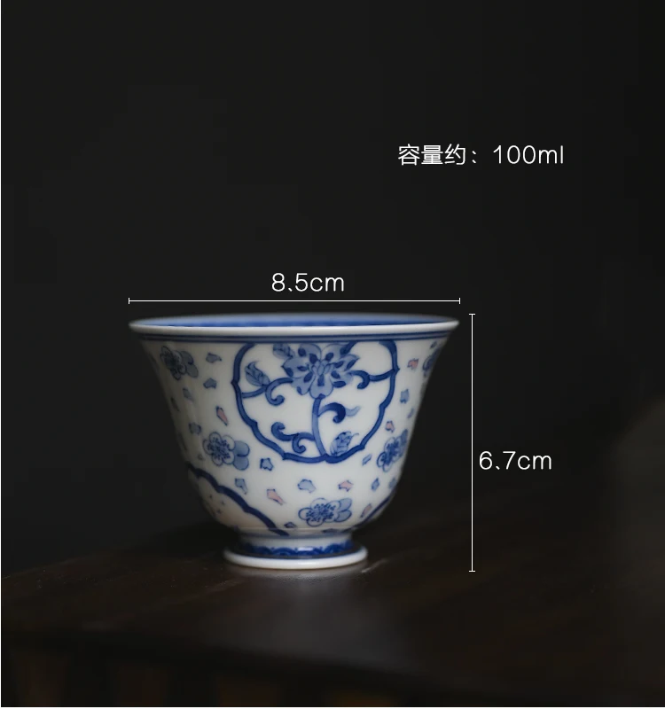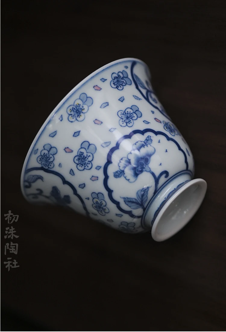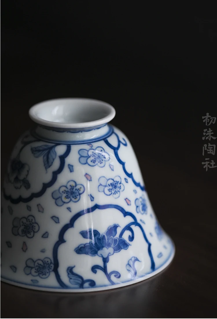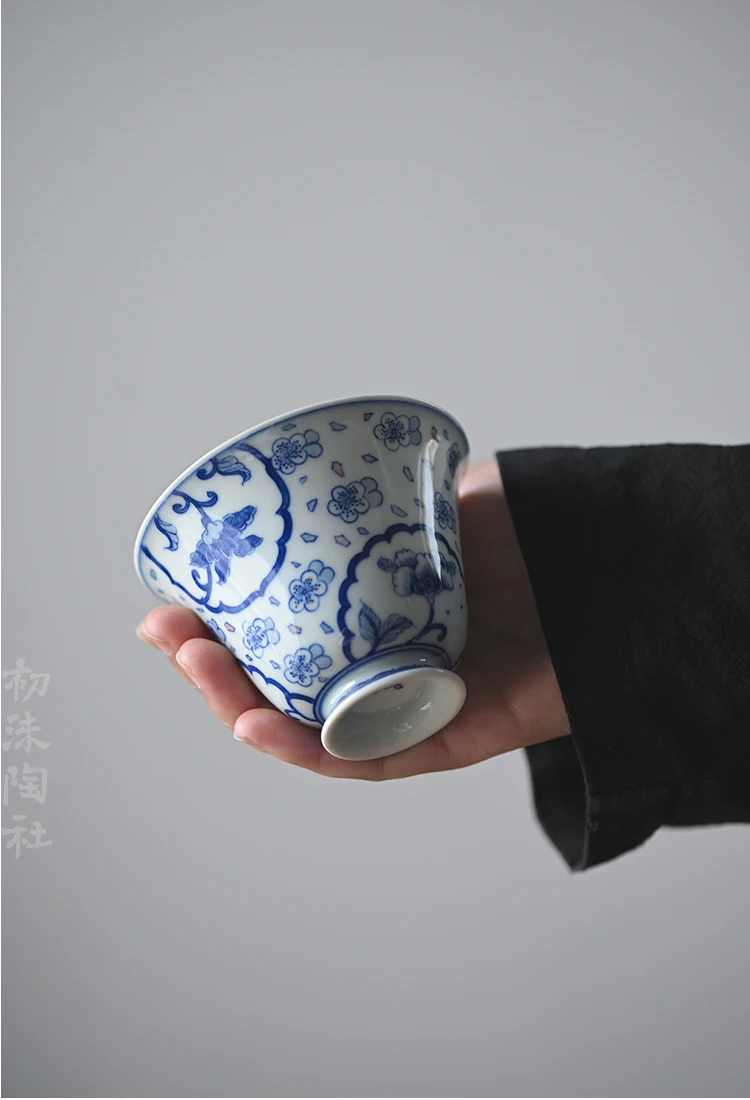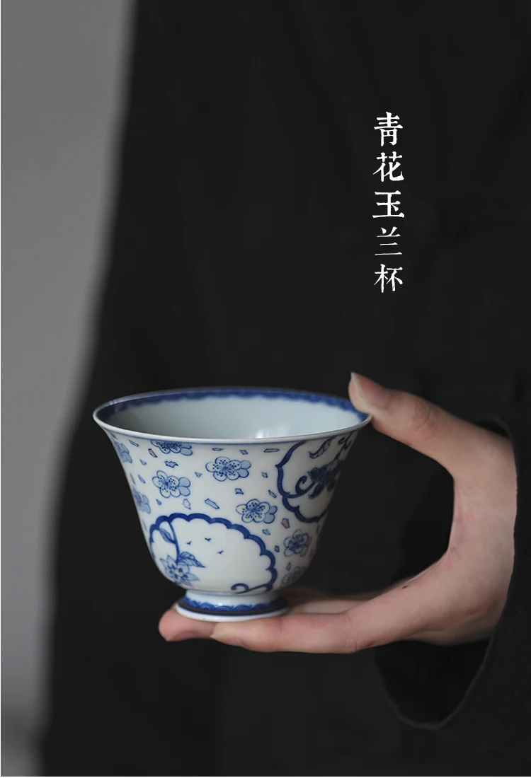 society Jingdezhen underglaze blue and white yulan cup Kungfu large tea cup drinking kungfu tea set household ceramics