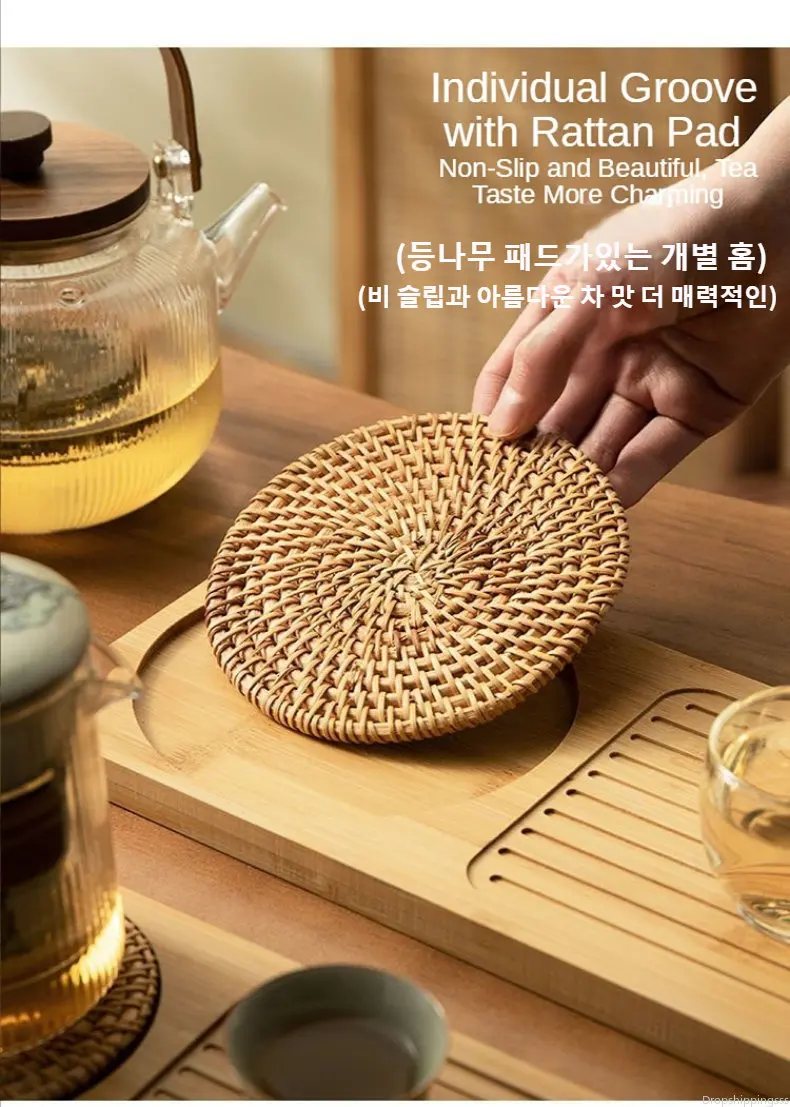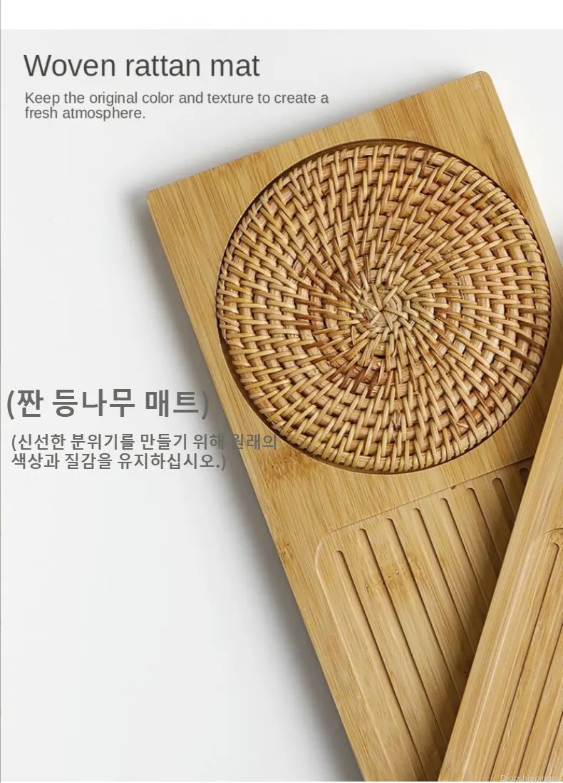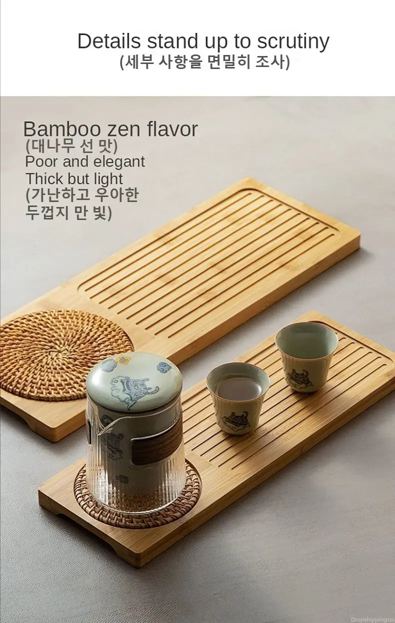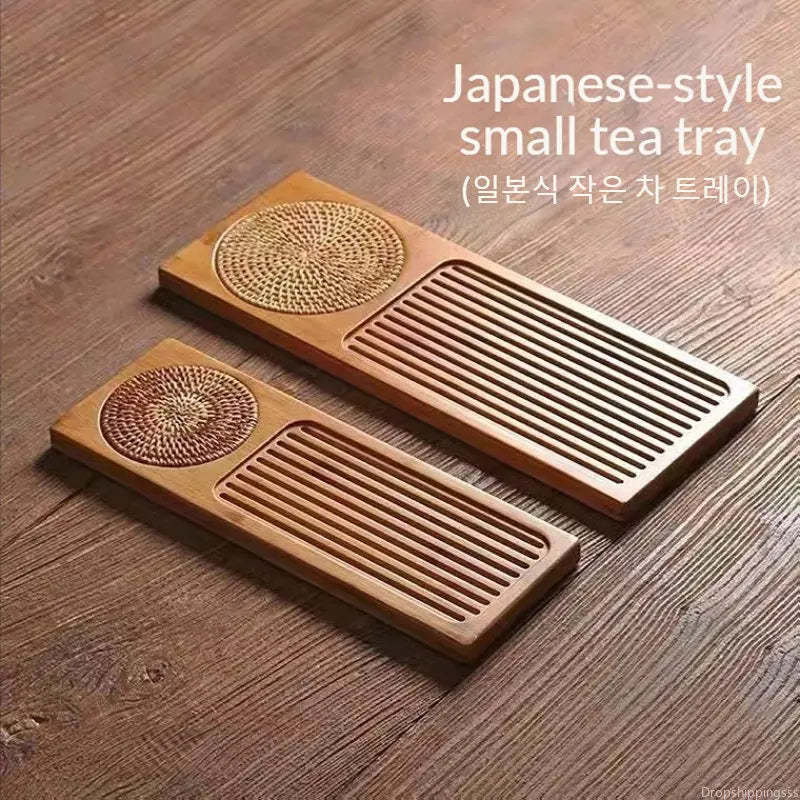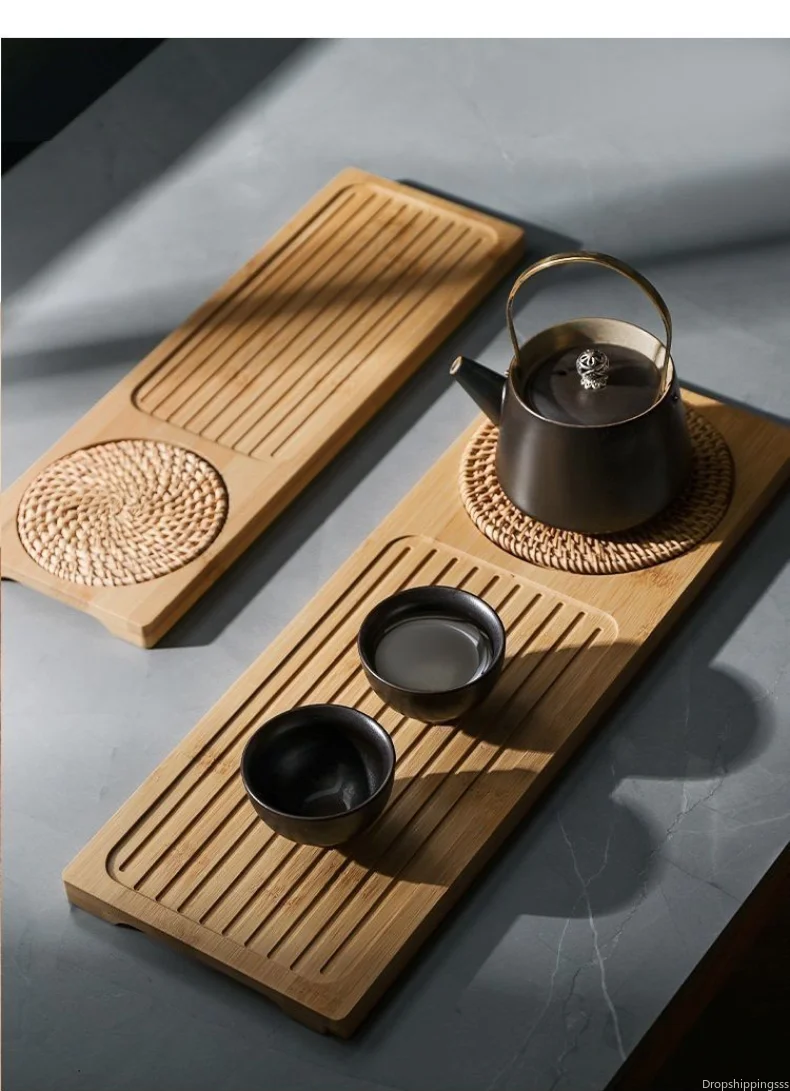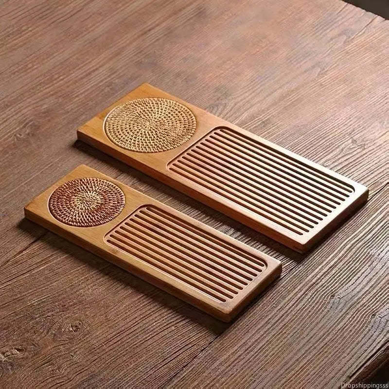 Solid Bamboo Wood Tea Tray Rattan Mat Rectangle Serving Table Plate Storage Dish for Hotel Tea Plate Accessories Saucer