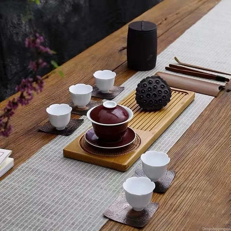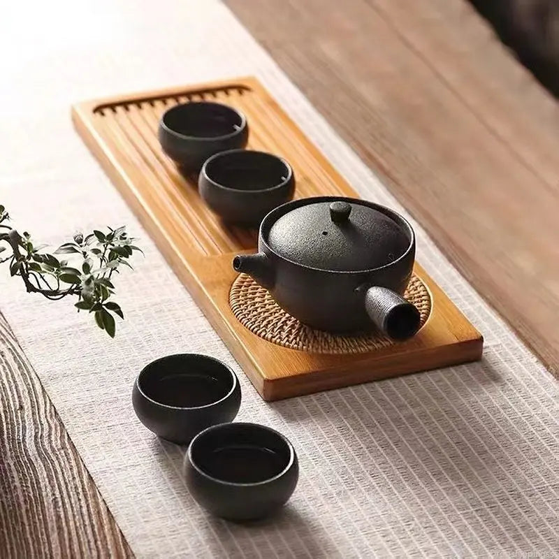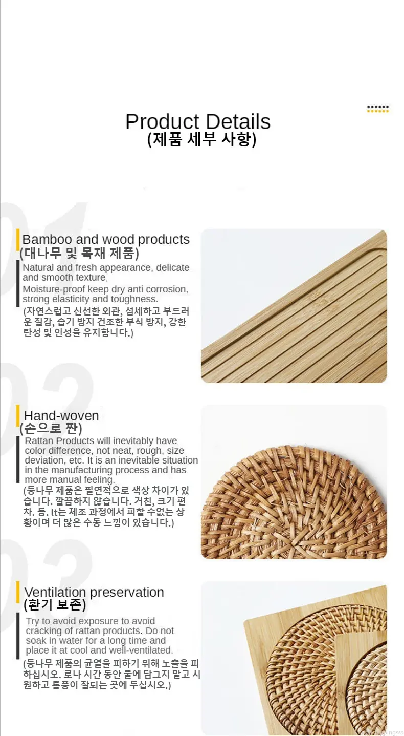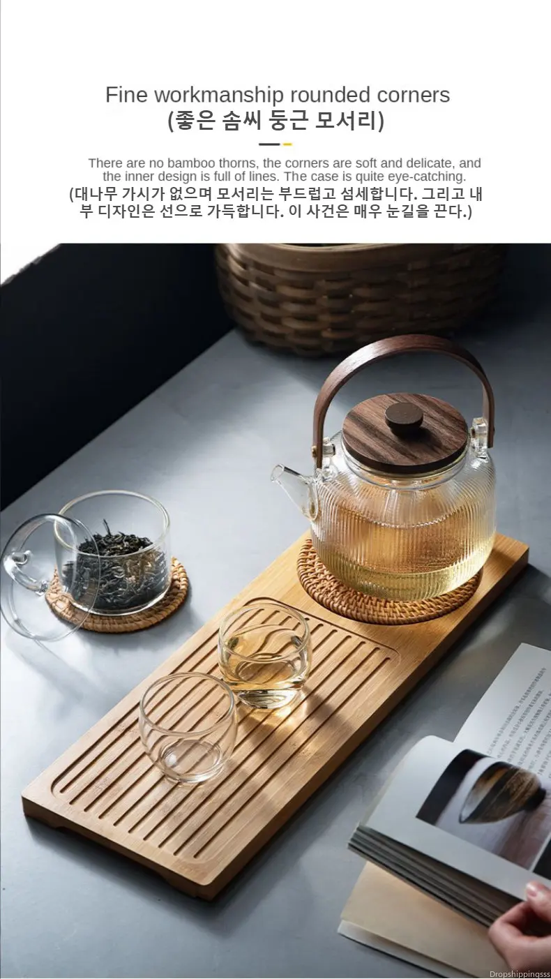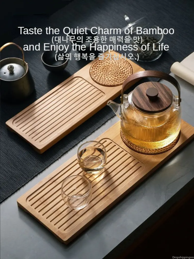 Solid Bamboo Wood Tea Tray Rattan Mat Rectangle Serving Table Plate Storage Dish for Hotel Tea Plate Accessories Saucer