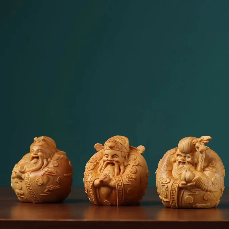 Fu Lu Shou is the three gods in the Han folk belief, symbolizing happiness, auspiciousness and longevity. "Fu Shou Shuang Quan", "Fu Shou Wu Jiang", and "Fu Xing Gao Zhao" are the most frequently spoken words of congratulations by the folks. Fu, wearing an official hat holding a jade ruyi or holding a child in his hand is the first-rank emperor of the heavenly officials, and the blessings of the heavenly officials come from this; Lu, holding a ruyi in his hand means high-ranking officials' wealth; longevity, a white Hu mustache, holding a dragon-head stick in his hand Shou Tao means long life and one hundred years old.