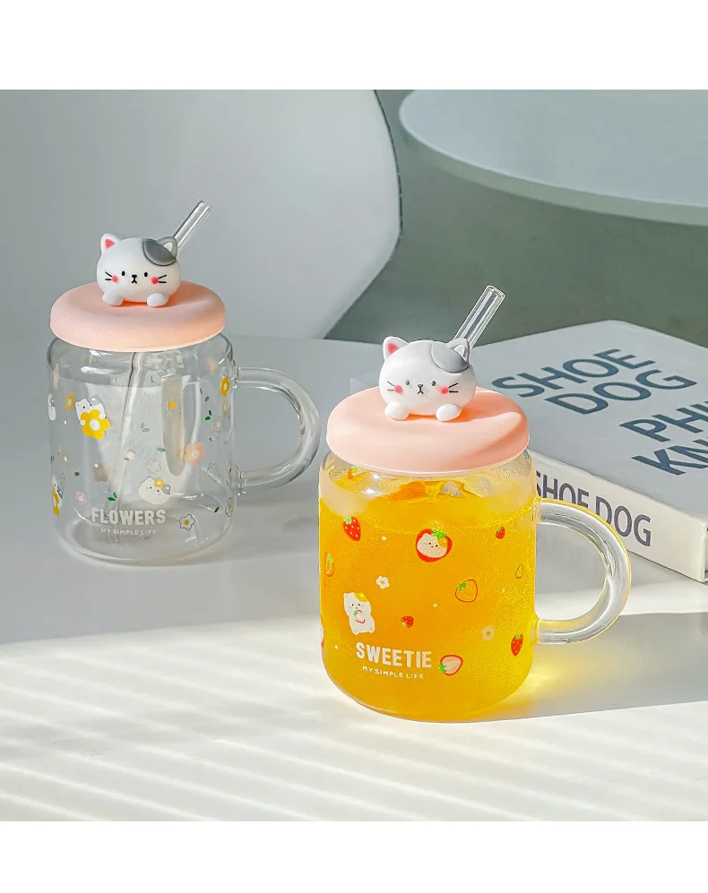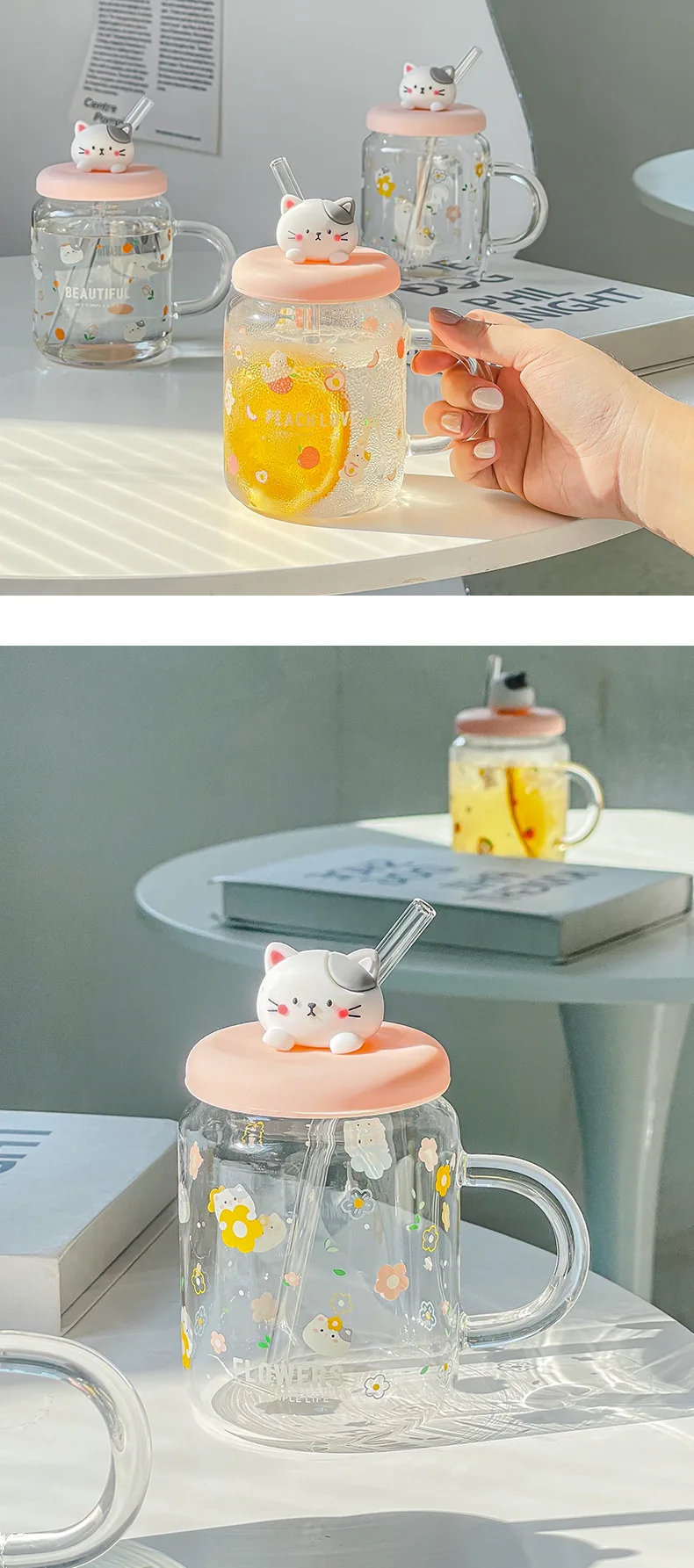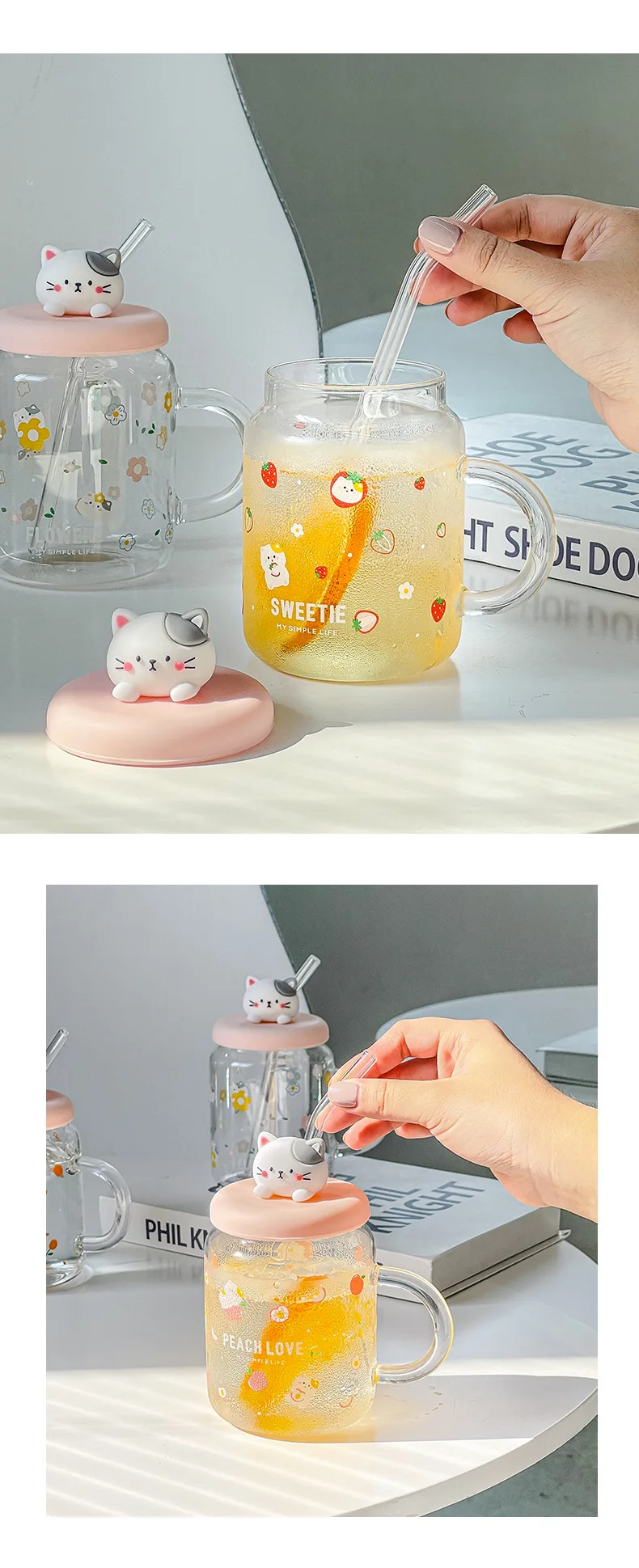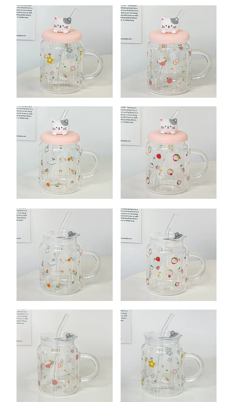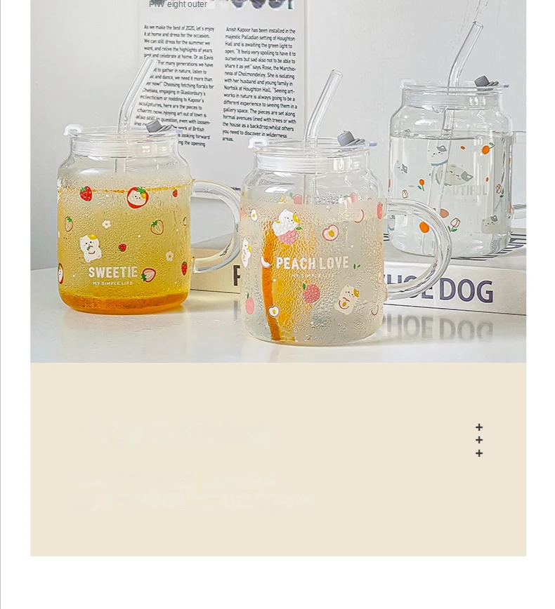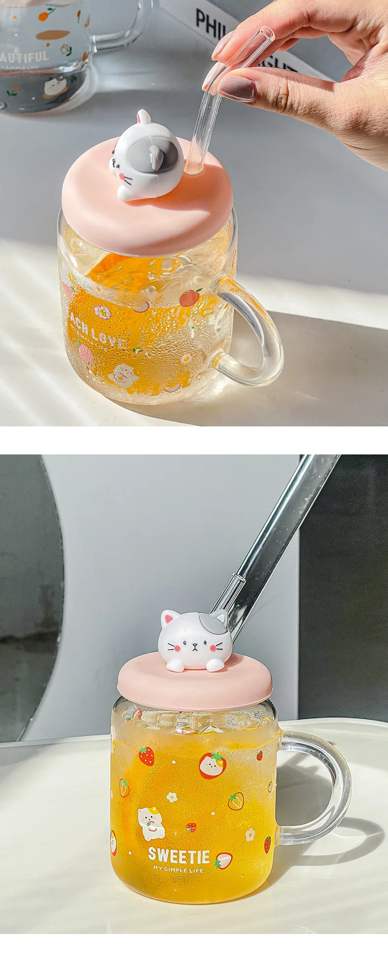 Straw Cup Glasses Cute Cartoon Glass Mug Original Mugs Coffee Cups Drinkware Unusual Tea Cup Set Personalized Gift Cupshe Beer