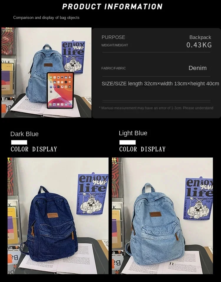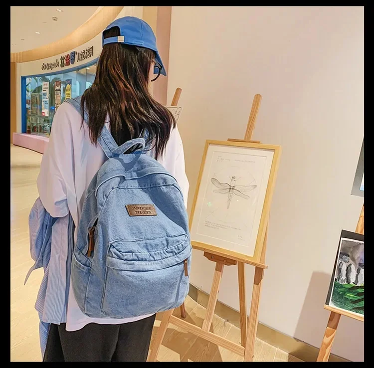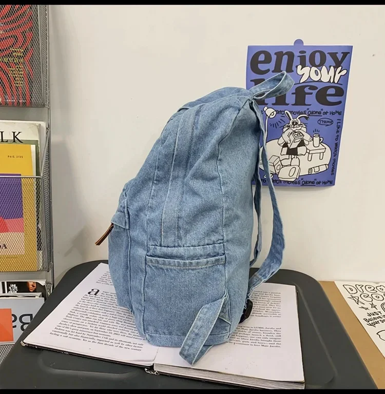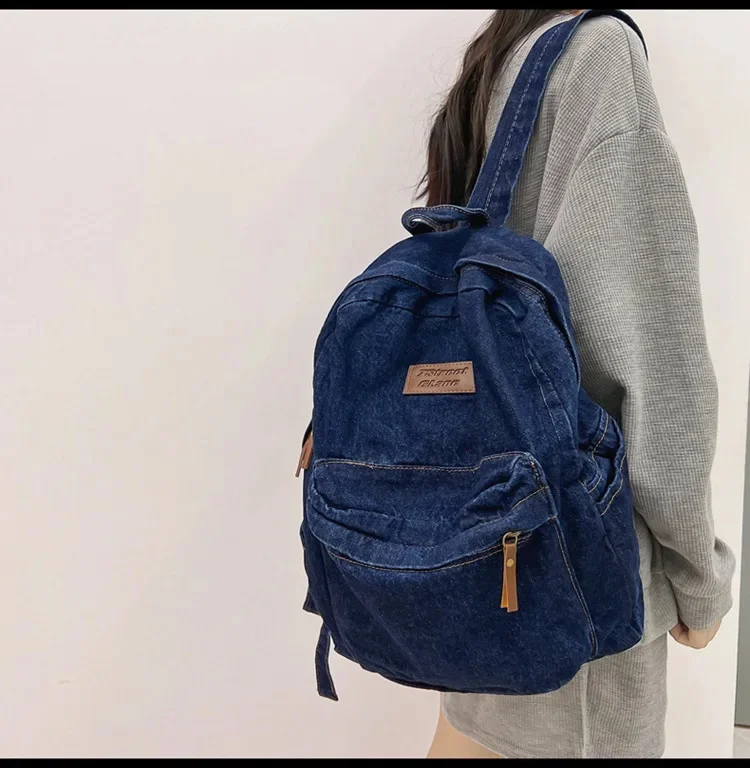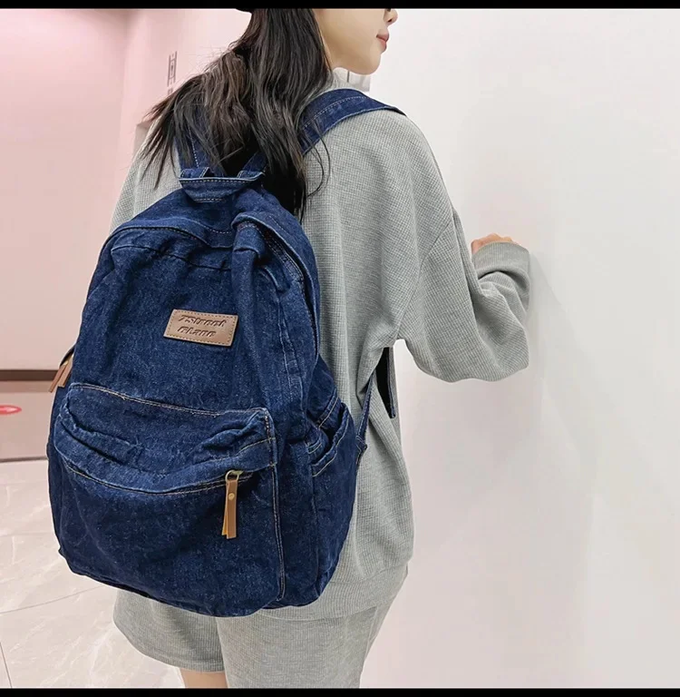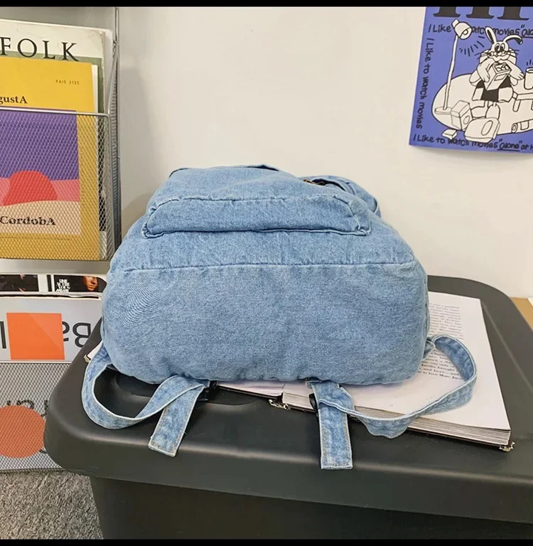 Street Fashion Women's Casual Denim Student School Bag For Girls Korean Style Female Travel Backpack