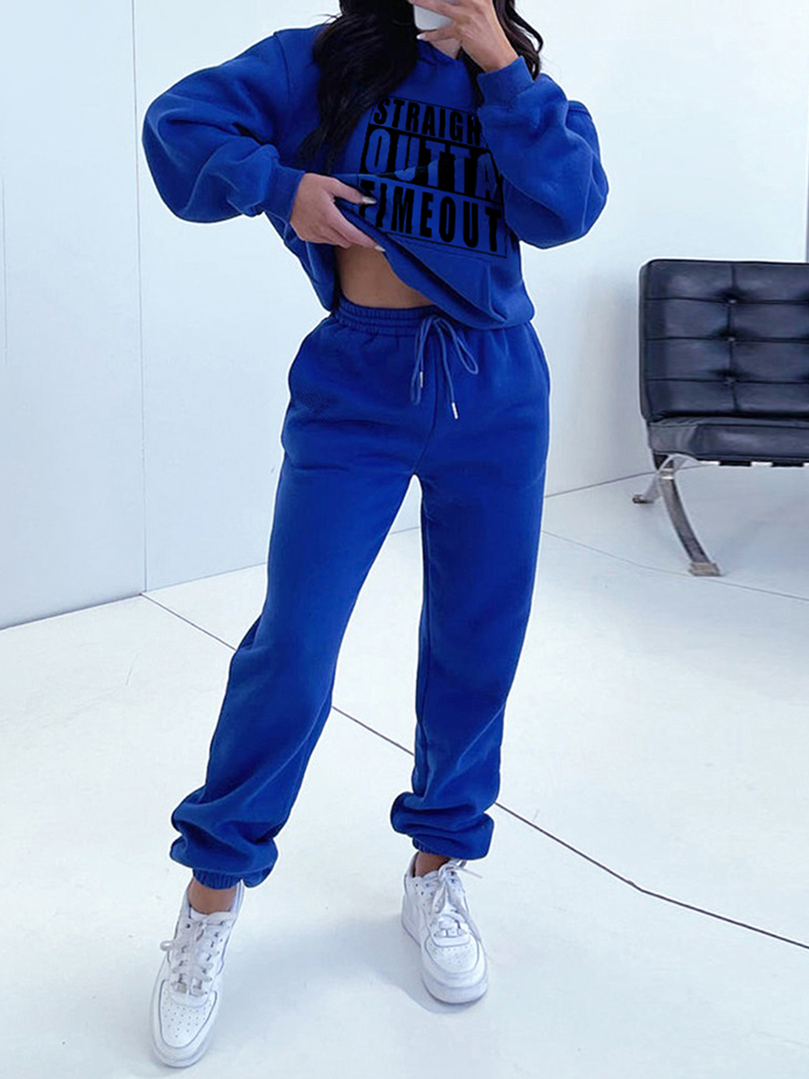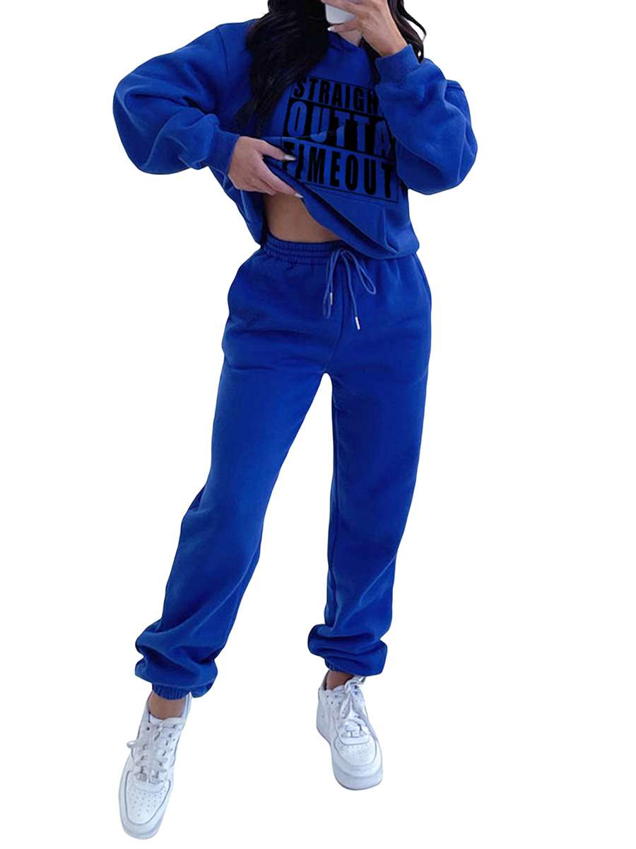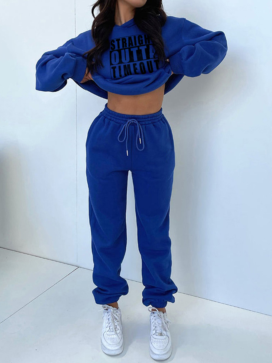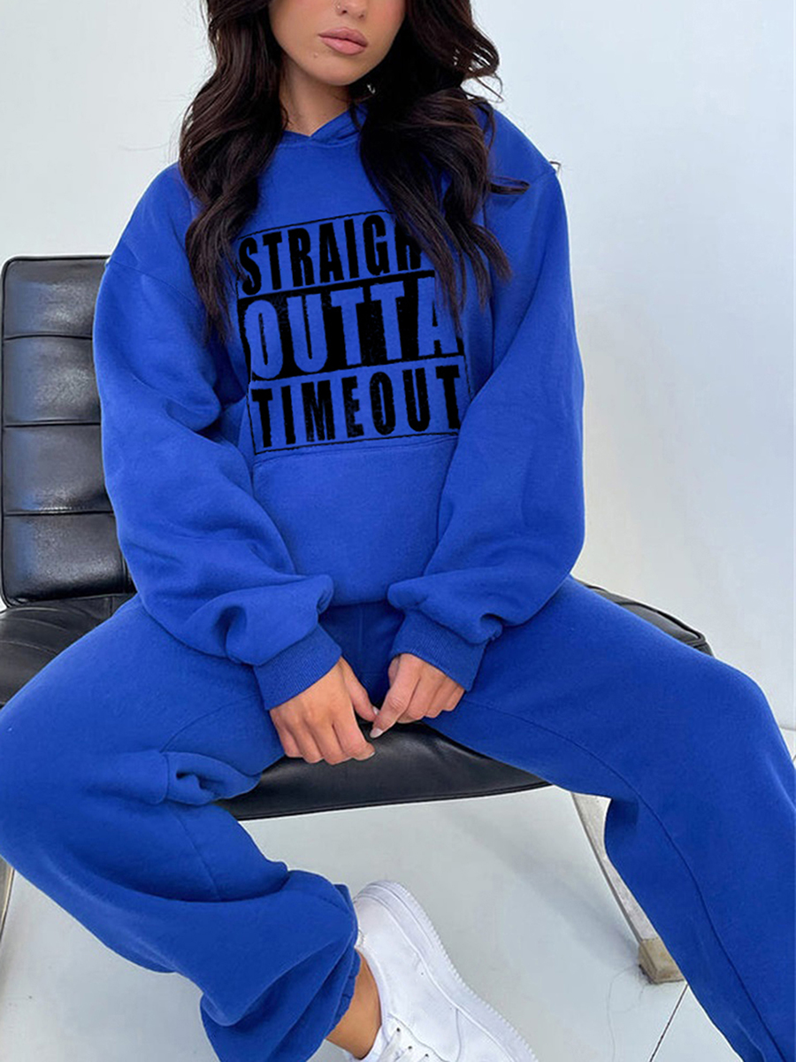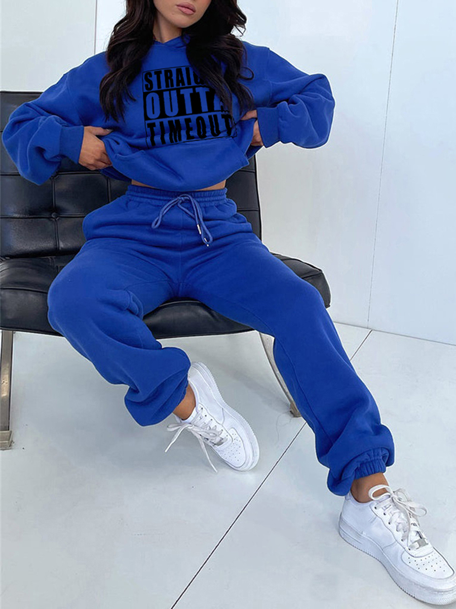 Women Winter Pants Set Vintage Letter Print Long Sleeve Hoodies and Solid Color Pants 2 Piece Outfits Streetwear