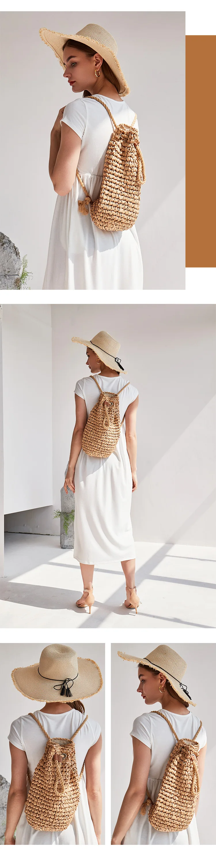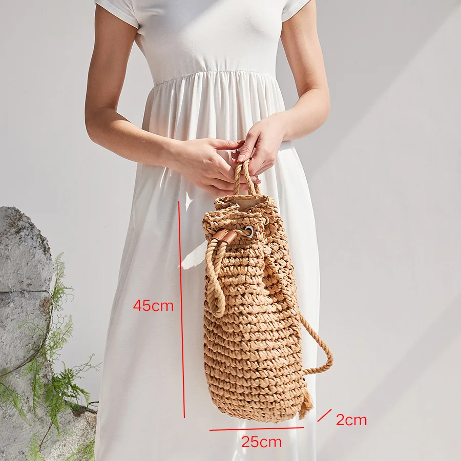 Summer Straw Backpack for Women Handmade Drawstring Beach Shoulder Bags Raffia Rattan Woven Travel Handbags bali lady backpacks