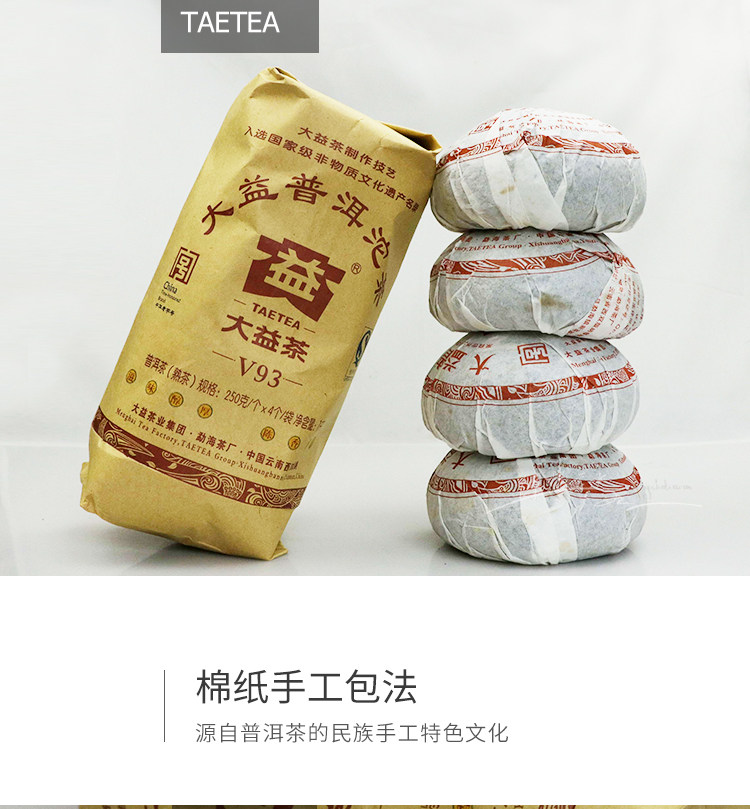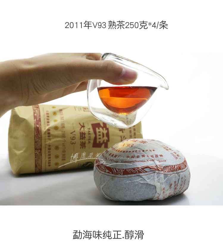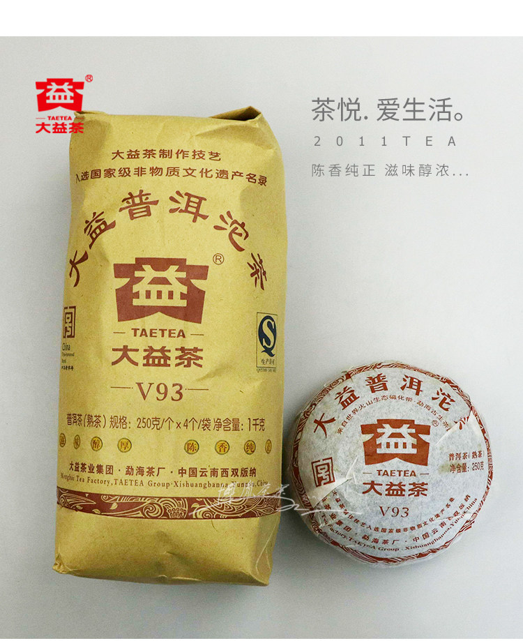 V93 ripe Pu Er tea was first released in 2005, a high classic, quality ripe Pu Er tea. Why it is called V93? Because it inherits the special recipe of high quality Menghai Pu Er tea duced in 1993; V is the code summary for the V93, V2, V4 series of Pu Er tea, whose recipes are the combination of past classic Maocha techniques, quality characters, taste and aroma with the new cessing and invention.