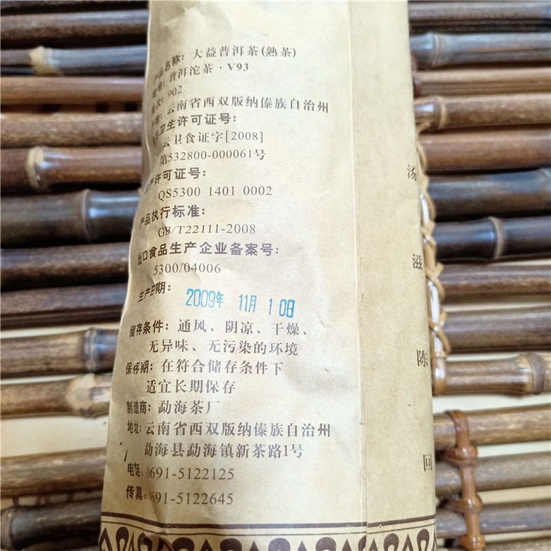 Tea Type: Puer Ripe tea Net weight: 100g/pc, 5pcs/bag. Production Date: 2009 Year Origin: Menghai,Yunnan,China Manufacturer: Menghai Tea factory,TAETEA Group.