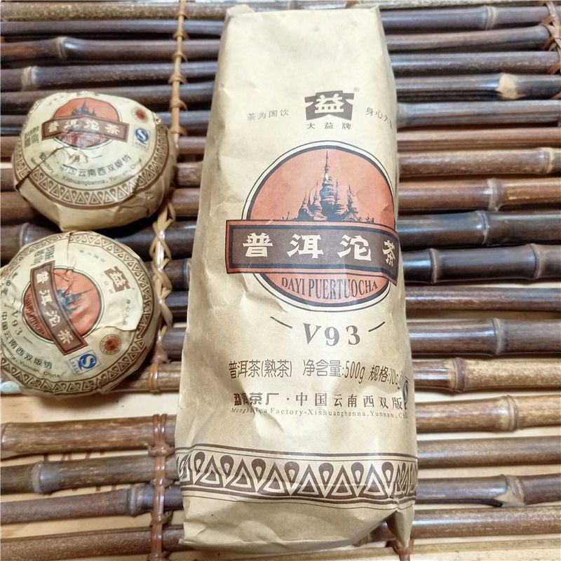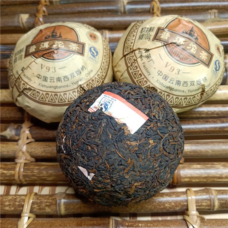 V93 ripe Pu Er tea was first released in 2005, a high classic, quality ripe Pu Er tea. Why it is called V93? Because it inherits the special recipe of high quality Menghai Pu Er tea produced in 1993; V is the code summary for the V93, V2, V4 series of Pu Er tea, whose recipes are the combination of past classic Maocha techniques, quality characters, taste and aroma with the new processing and invention.