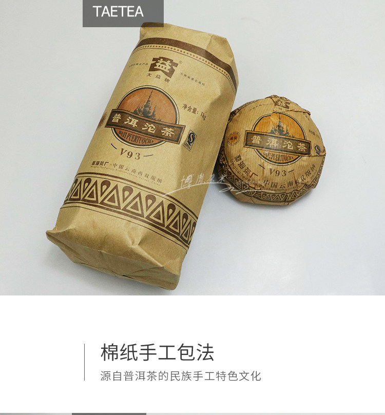 V93 ripe Pu Er tea was first released in 2005, a high classic, quality ripe Pu Er tea. Why it is called V93, Because it inherits the special recipe of high quality Menghai Pu Er tea produced in 1993; V is the code summary for the V93, V2, V4 series of Pu Er tea, whose recipes are the combination of past classic Maocha techniques, quality characters, taste and aroma with the new processing and invention.