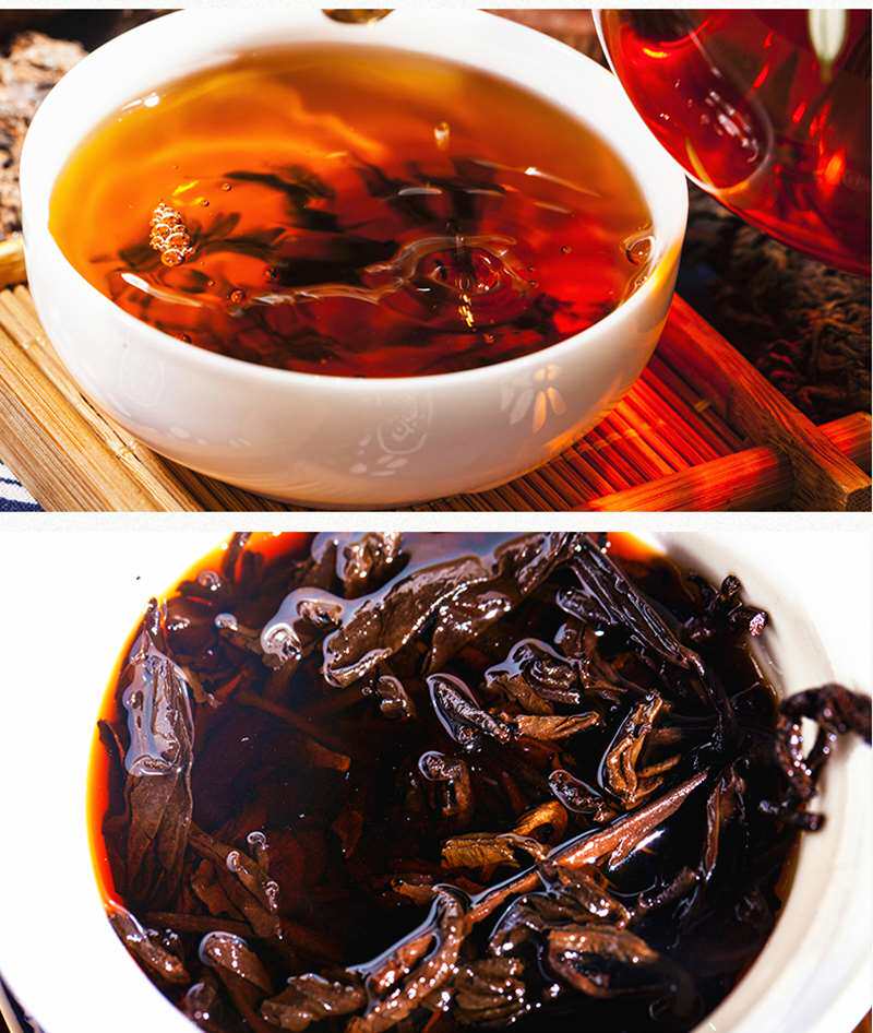 汤色红浓透亮,滋味浓醇饱满,口感滑顺细腻,陈韵浓郁,带枣香,回味持久。