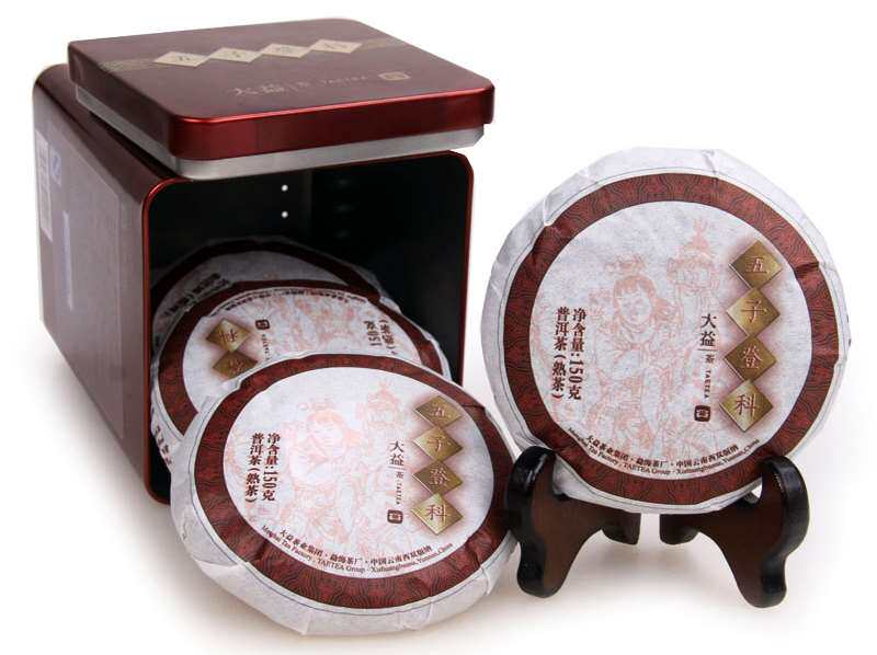 大益五子登科选用勐海地区大叶种为原料,以大益熟茶传统工艺发酵,筛分提毫、拼配而成。质地敦厚,精致小巧,口感黏糊,回味又远。