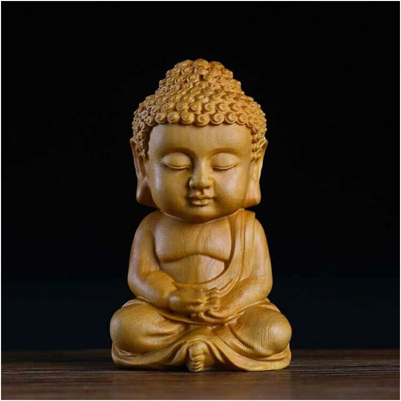 Taihang Cliff cypress wood carving figurines, cute Buddha wooden ornaments, solid wood crafts, elephant cart ornaments