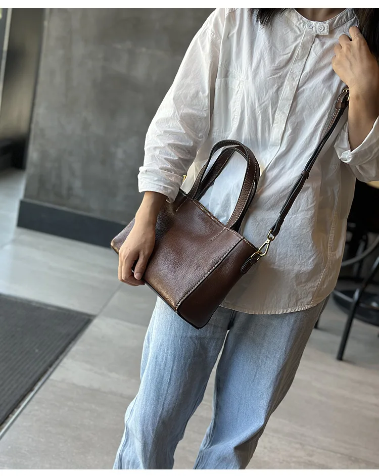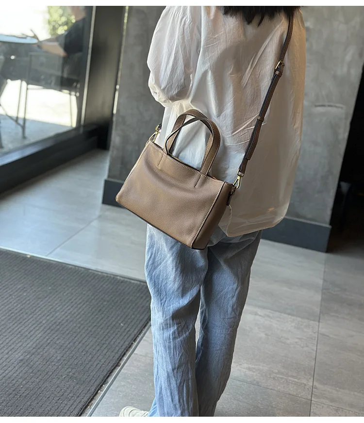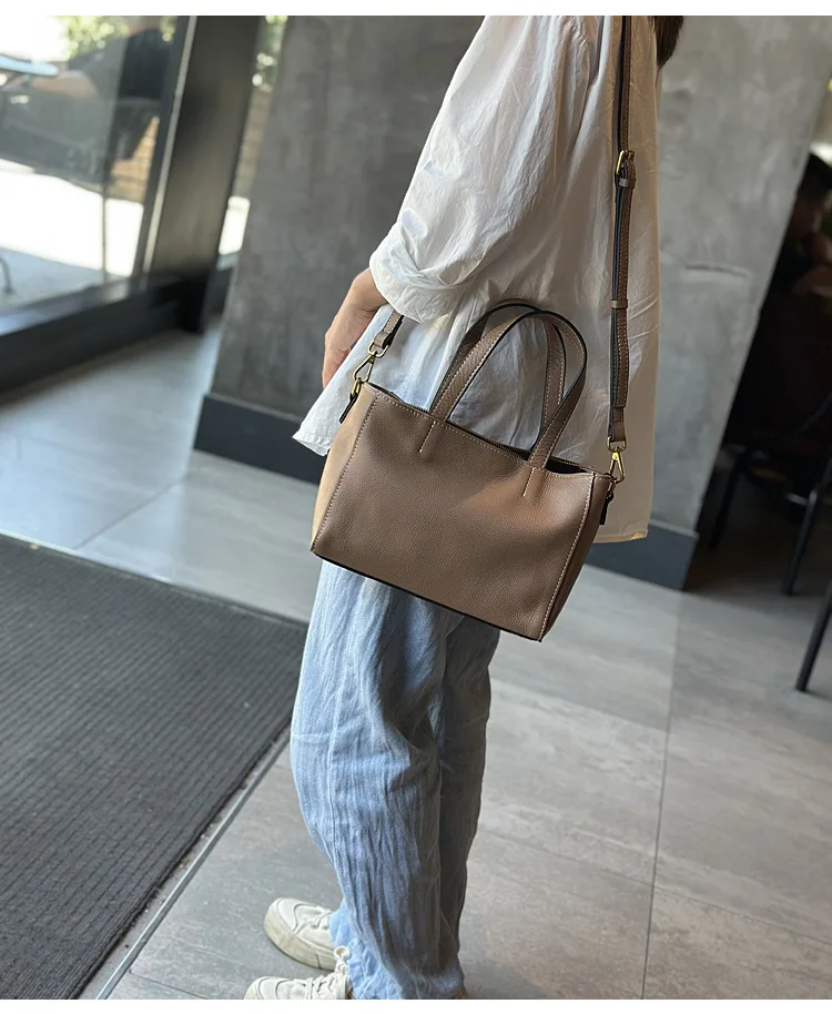 The first layer of cowhide casual women's bag 2023 new leather Tote bag vintage soft cowhide single shoulder crossbody bag