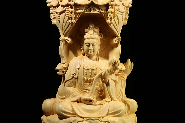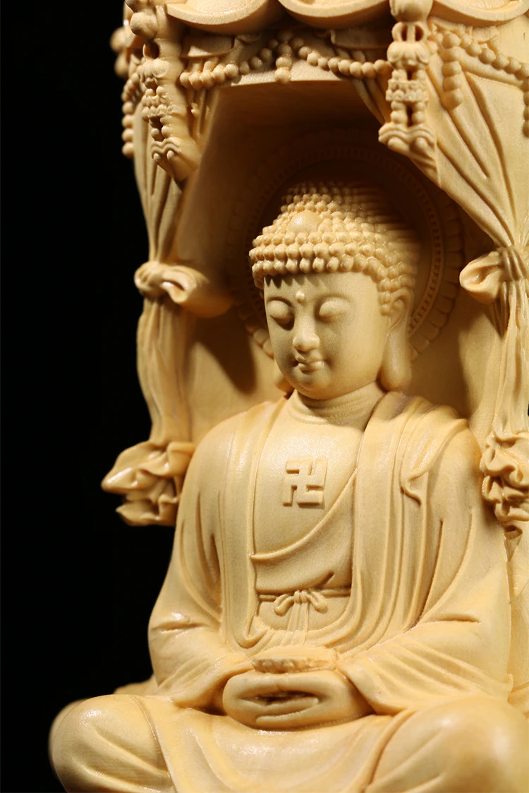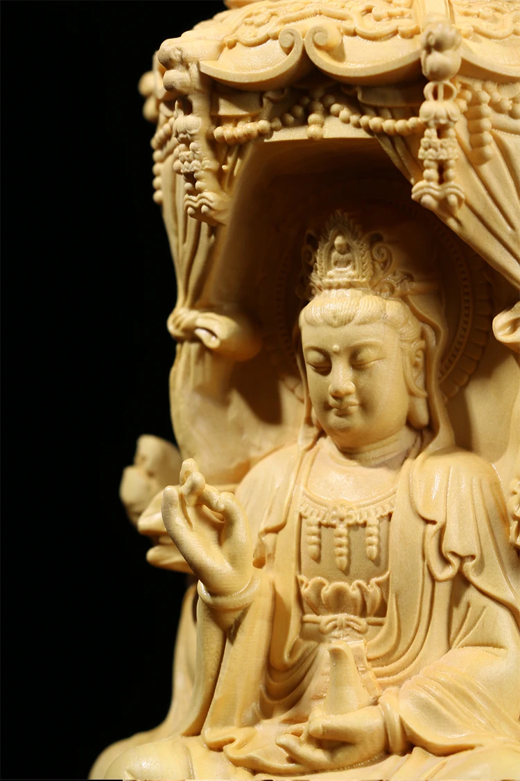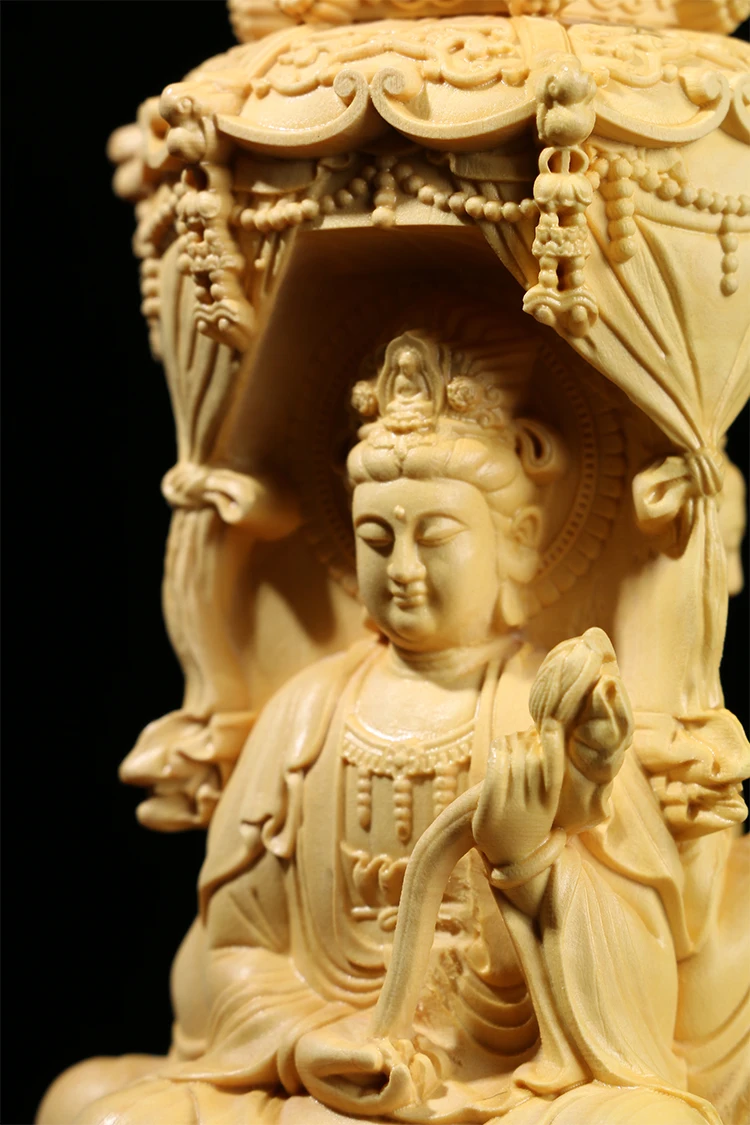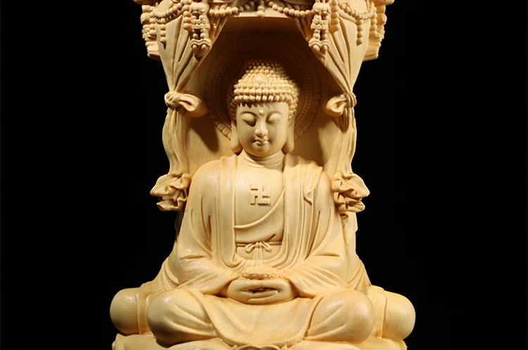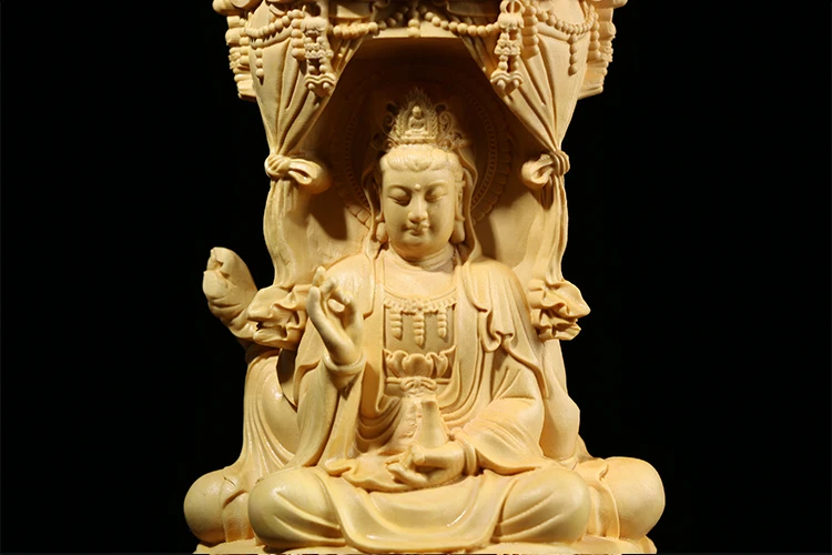 Three Sided Wood Carving Buddha Statue, 10 / 15CM, Guanyin Amitabha Buxus Bodhisattva, Solid Wood Ornaments