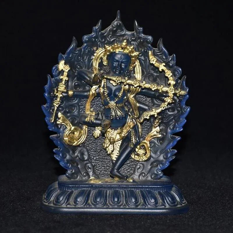 Tibet Buddhism Blue Liuli Glaze Glass Handmade Gild Buddha Buddha Statue