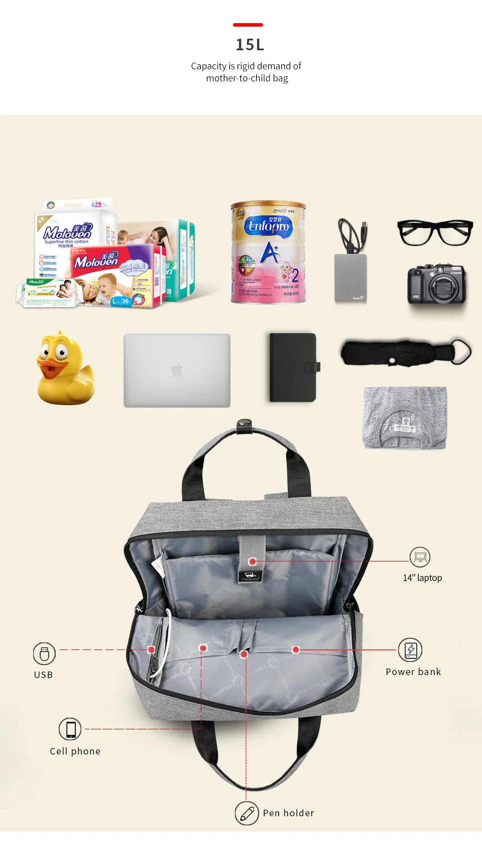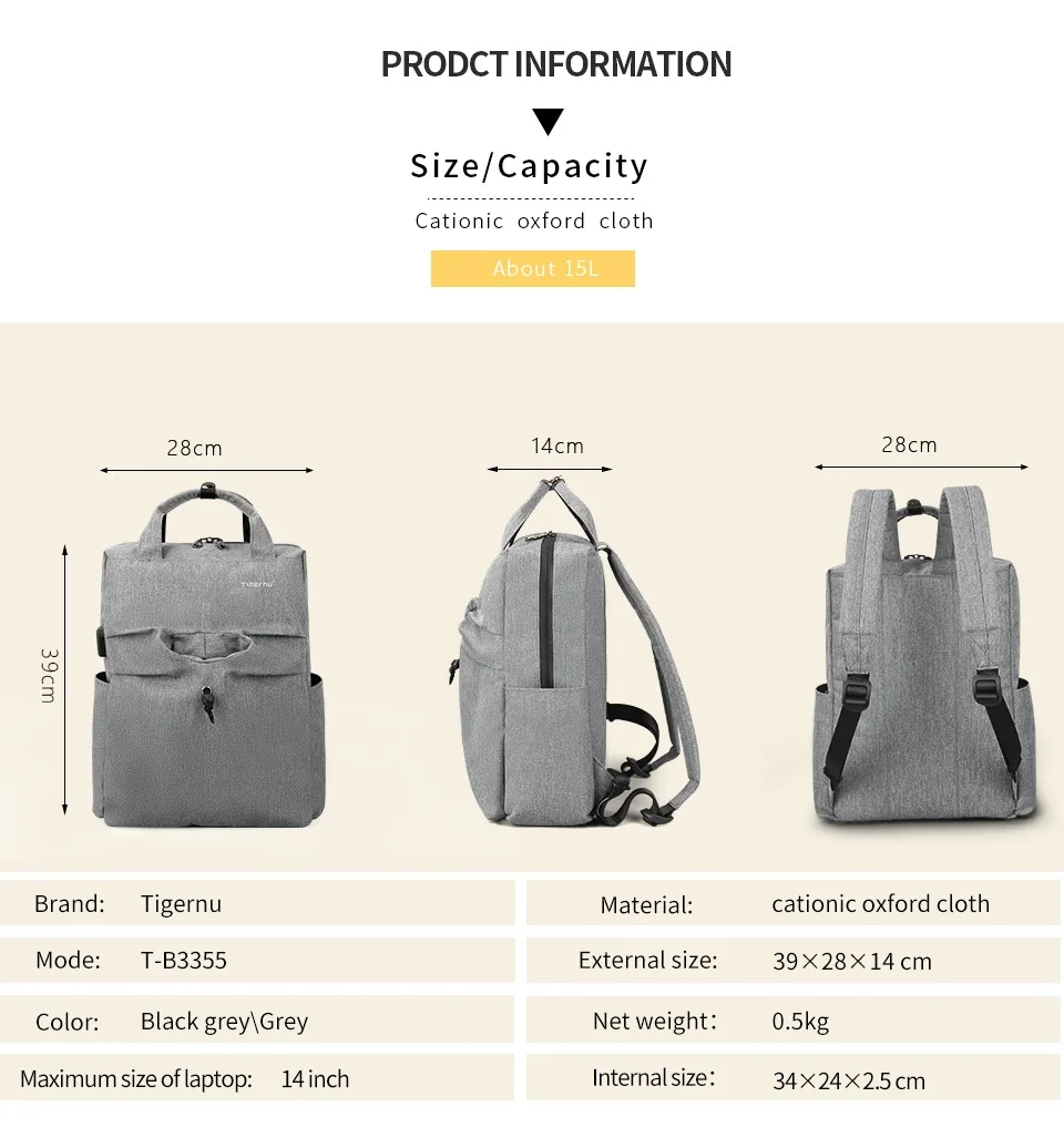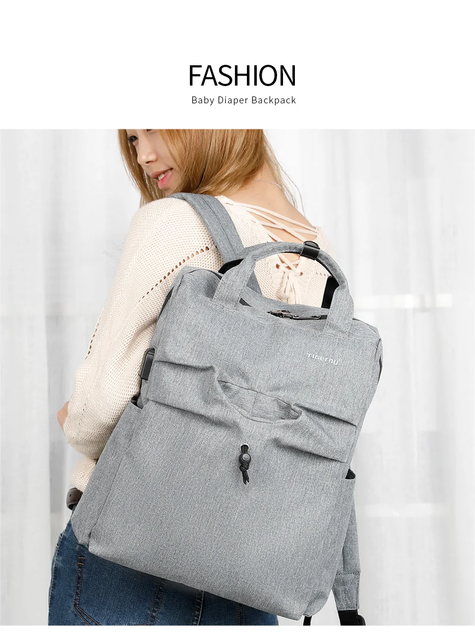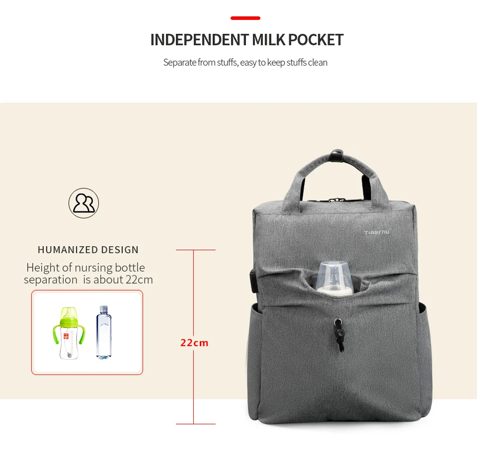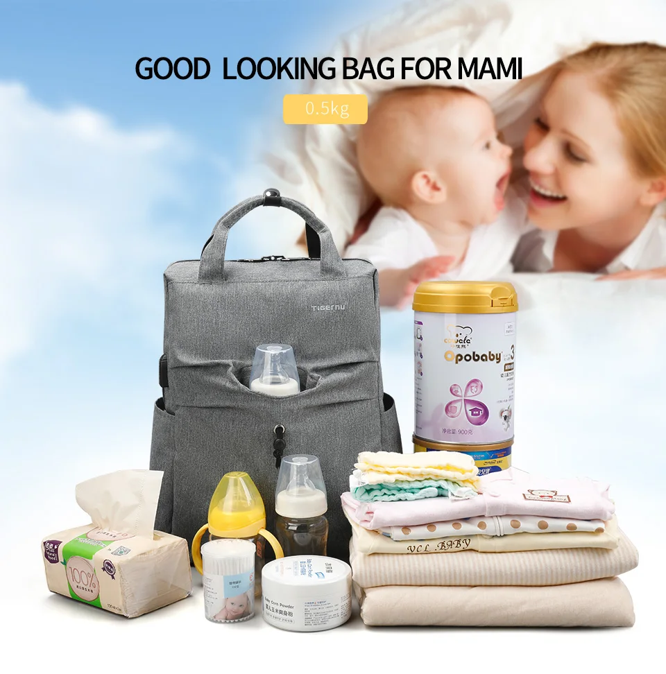 Tigernu Nappy Backpack Mummy Light Weight Baby Diaper Bags Waterproof Maternity Travel USB Backpack Bags Fashion Handbag For Mom