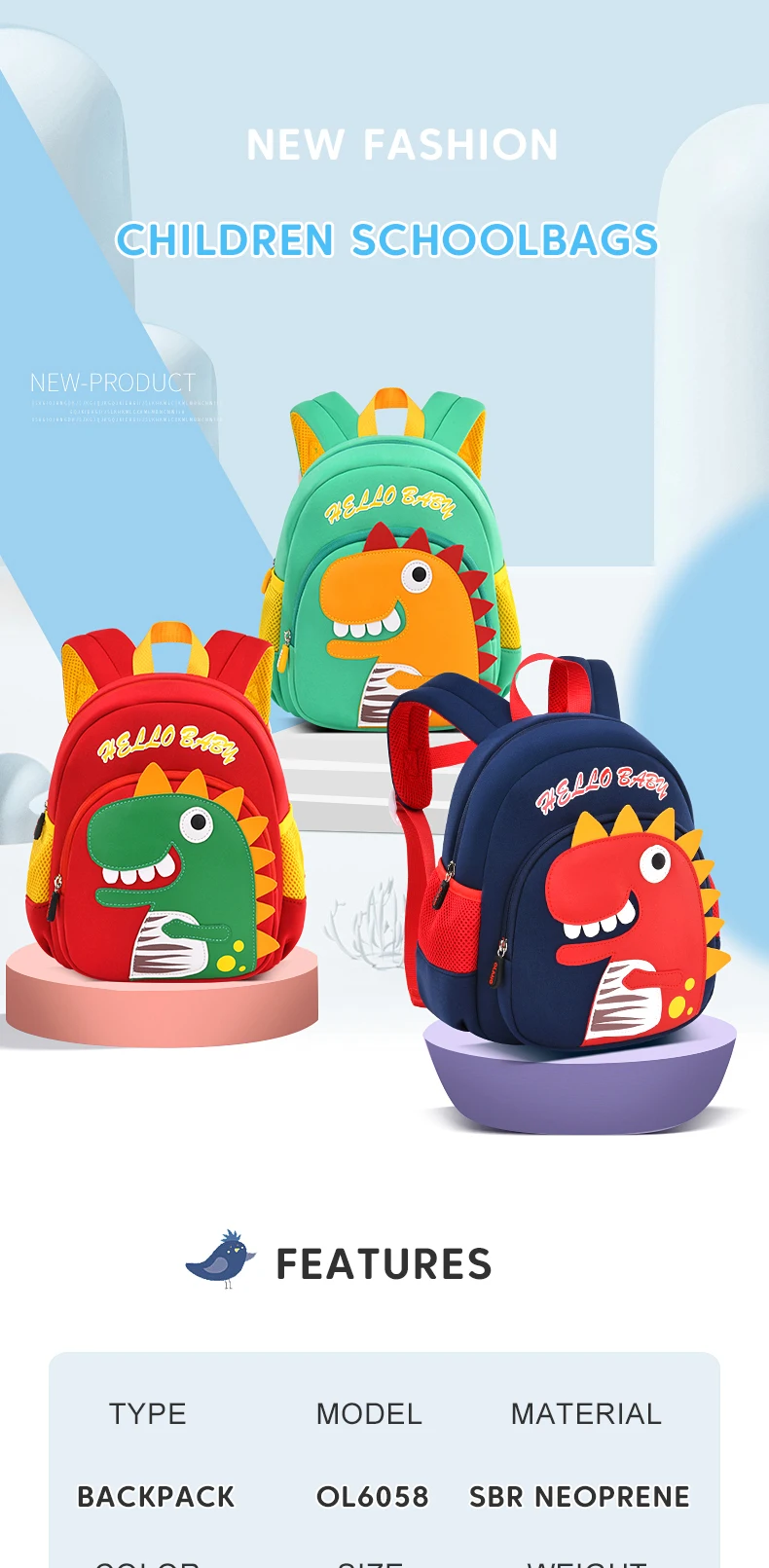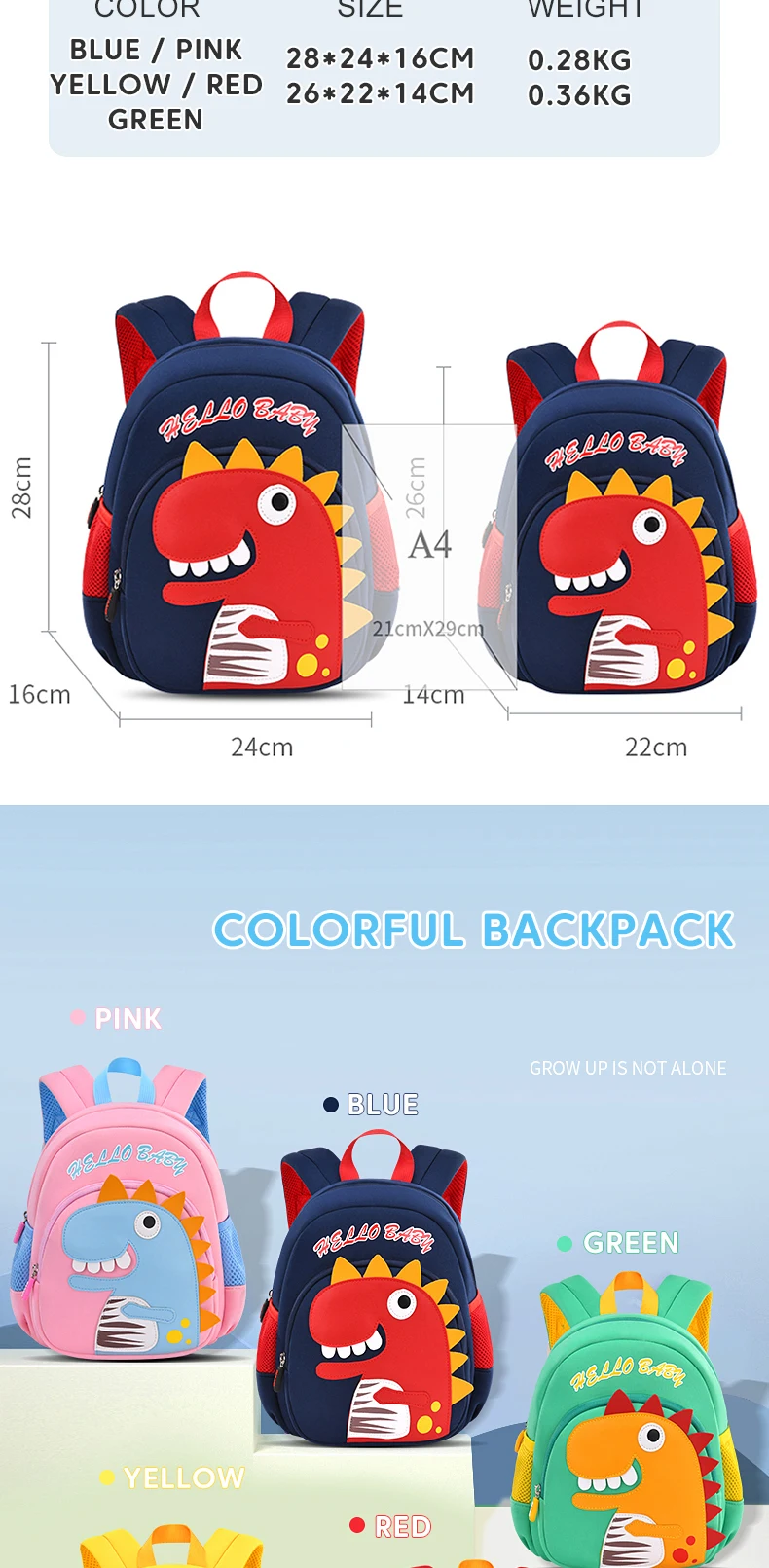 Toddler Children School Backpacks Kindergarten Kids School Bags for Boys Girl 3D Cartoon Dinosaur Schoolbag Waterproof Back Pack