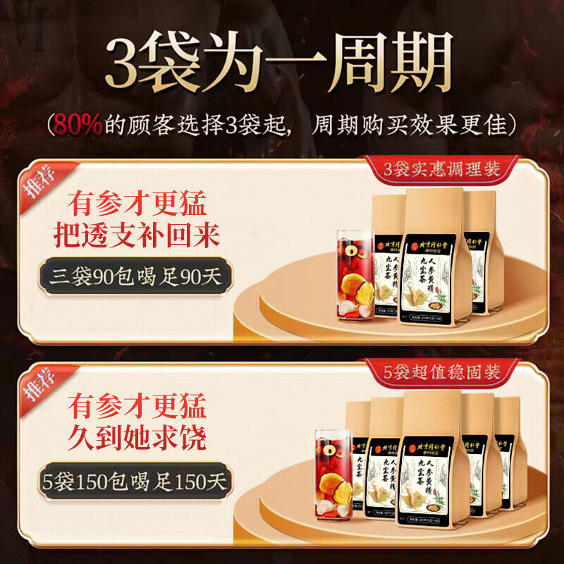 TongRenTang Ginseng and Yellow Essence Nine Treasures Tea 同仁堂人参黄精九宝茶150g/袋 男人茶