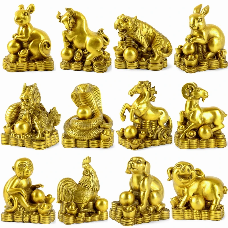 TOP COOL Asia home propitious Ornament The 12 Chinese Zodiacs cow tiger dragon snake horse monkey dog FENG SHUI brass statue