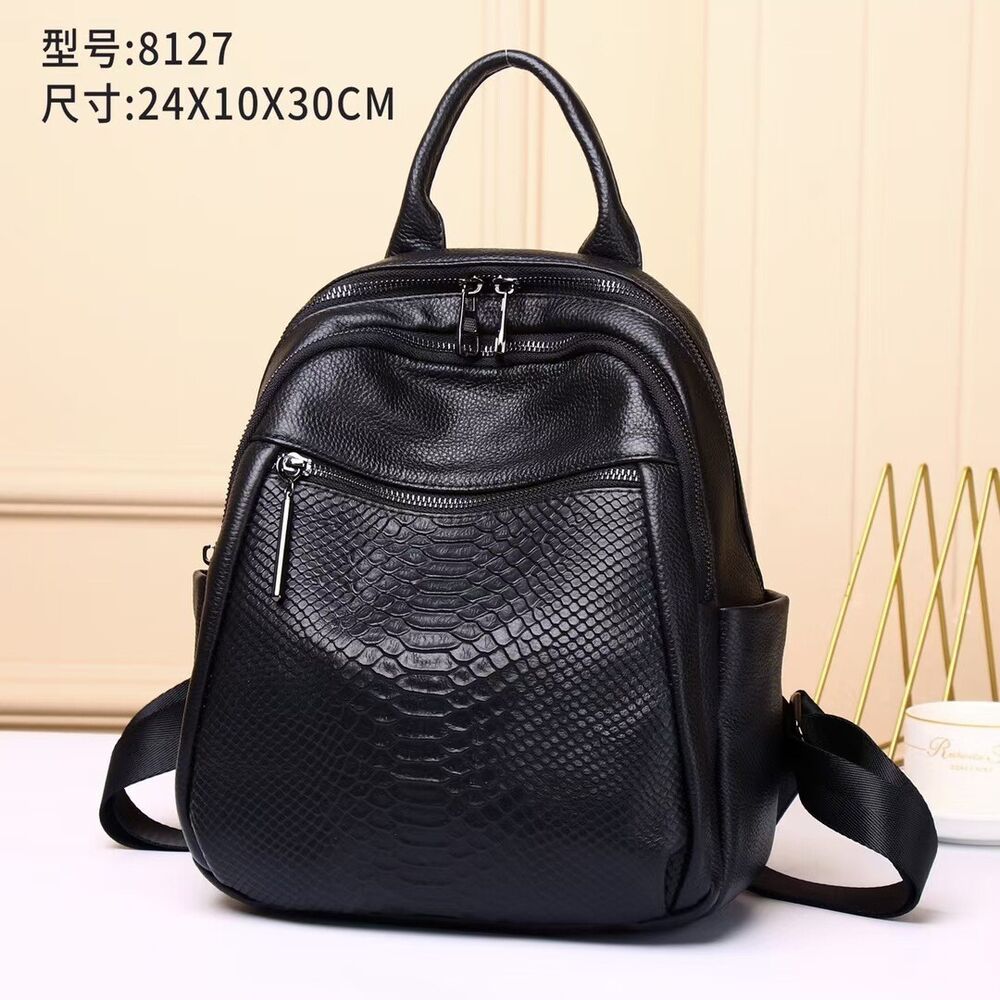 Top Cow Leather Black Women's bag, Crocodile Print Leather Backpack Travel Bags