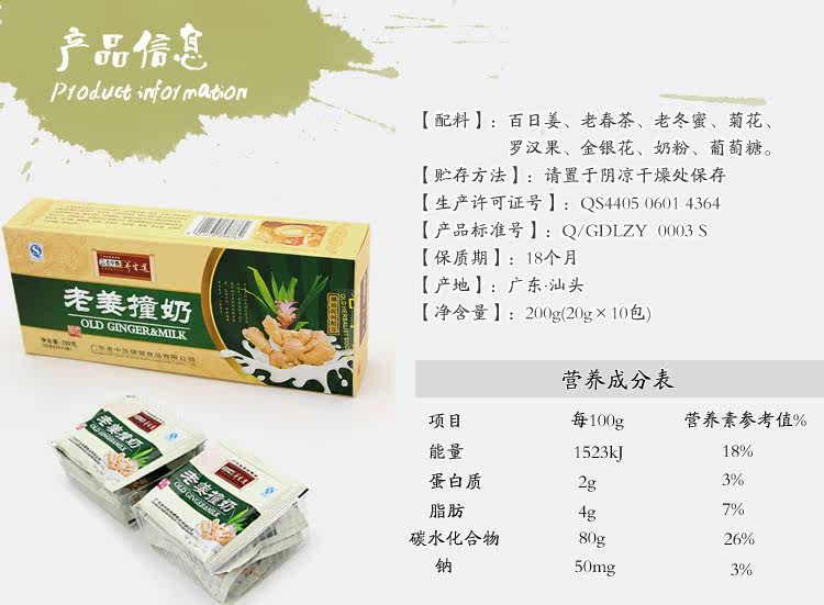 Traditional Chinese Medicine Herbal Health [Old Ginger&Milk] Solid coverage Nutritional Breakfast Milk Drink Warm Spleen and Stomach, Loved by Old and Young People, Non Coagulating Milk