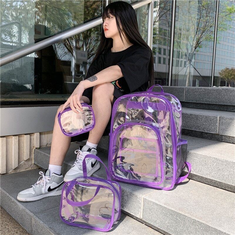 Material: PVC Color: Black, Purple, Grey Size: 31 x 15 x 43 (cm) / 12.2 x 5.91 x 16.93 (inch) M bag size: 25 x 10 x 18 (cm) / 9.84 x 3.94 x 7.09 (inch) S bag size: 17 x 5 x 13 (cm) / 6.69 x 1.97 x 5.12 (inch) Package Include: 1 x packet (no retail box)